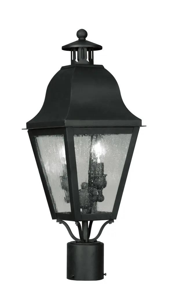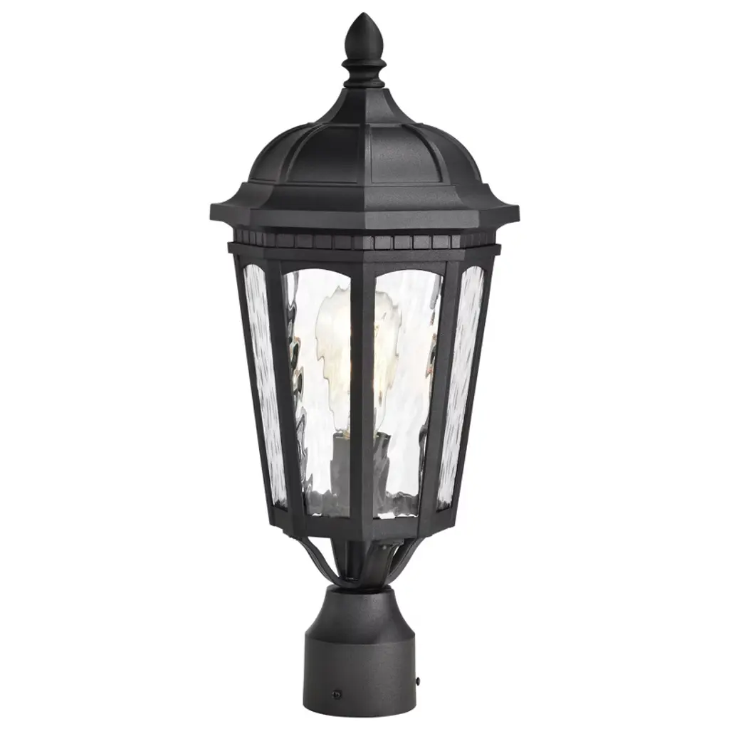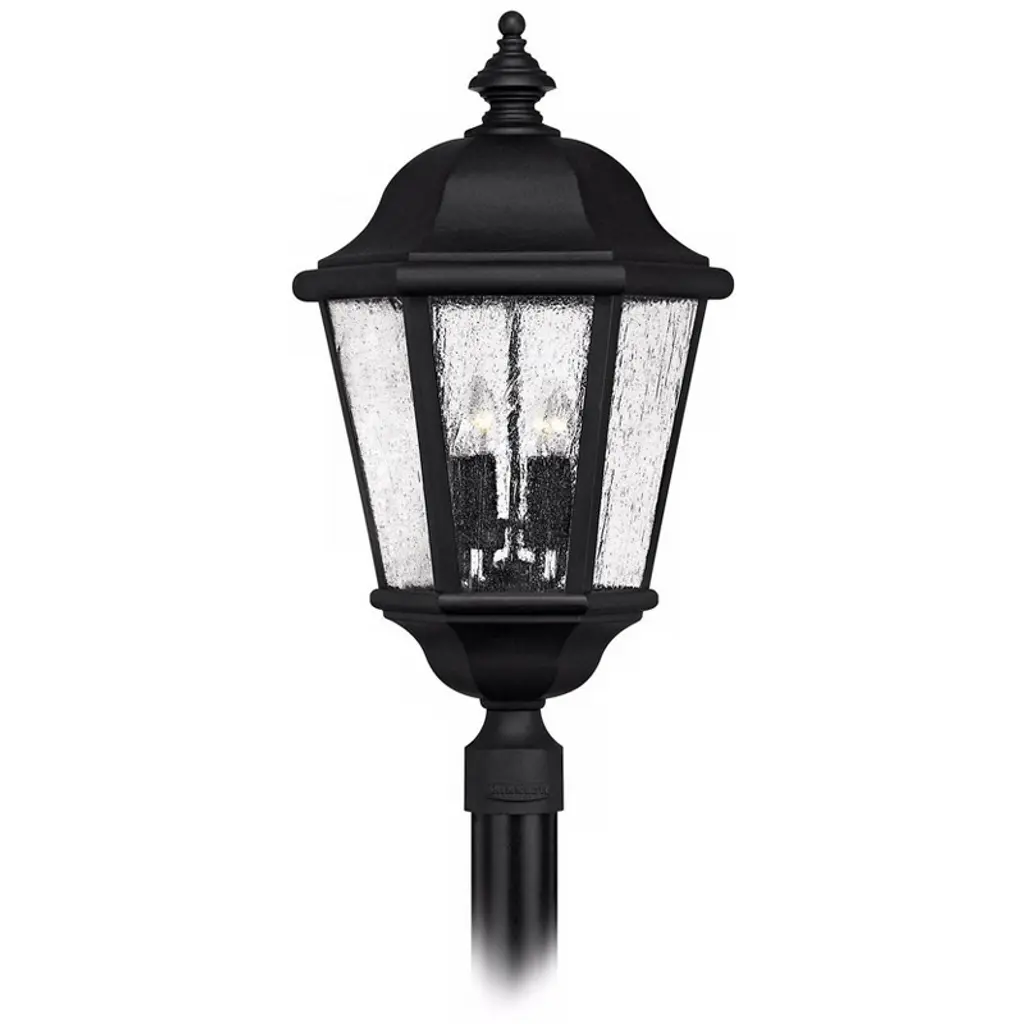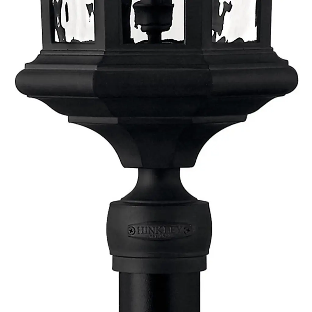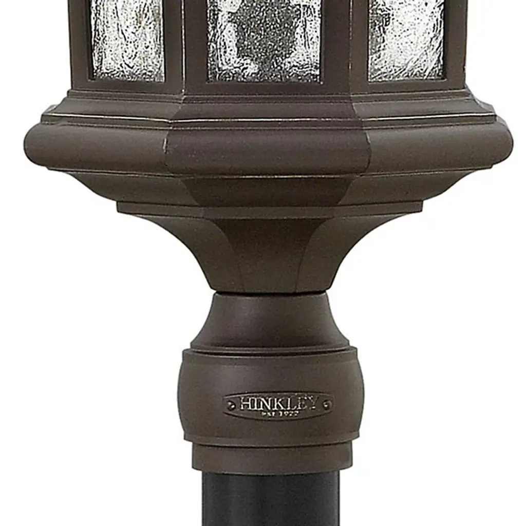 Expand your outdoor porch and pathway spaces with the Raley Outdoor Post Light from Hinkley Lighting. A robust and intriguing design patterned off vintage lantern designs, it uses a flaring top and base to hold series of slender, textured clear glass plates inside vertical openings around its sides. This arrangement is robust as well as refined, carefully mellowing the candelabra-style, wet-listed lamping to a pleasing glow that reaches out effortlessly in all directions. Post sold separately.