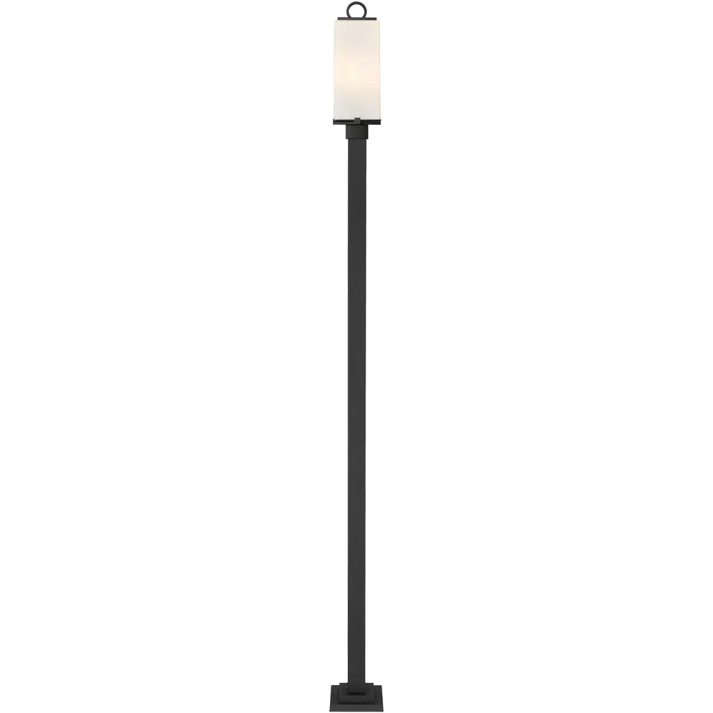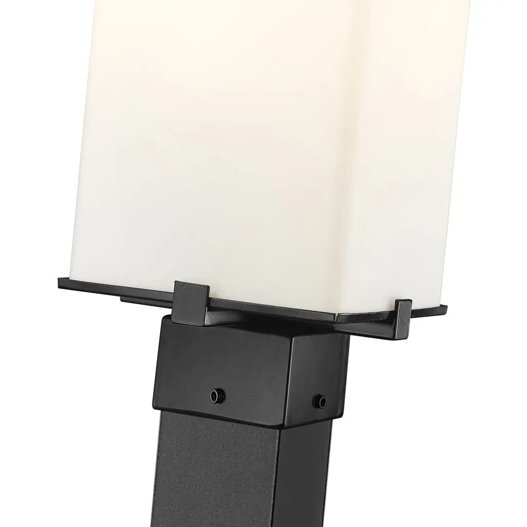 A charmingly simple two-light outdoor post mounted fixture made from steel boasts a black finish and a rectangular silhouette. With a white opal shade with coastal and contemporary styling, making an eye-catching addition to any porch or patio.