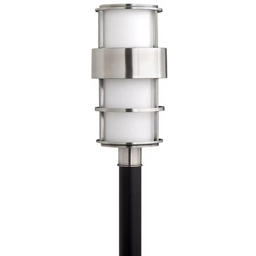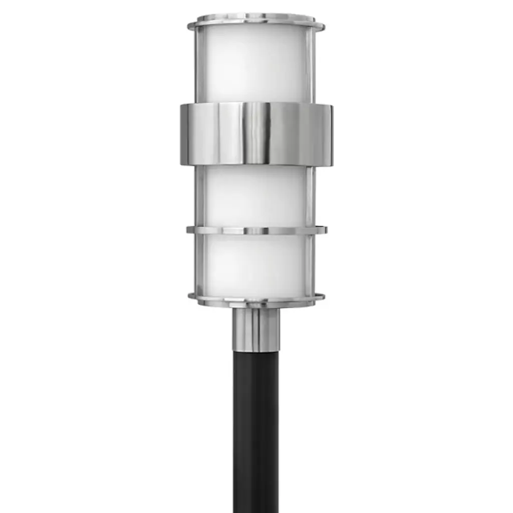 A clean-lined, versatile post mount that will complement a variety of outdoor styles. The Hinkley Lighting Saturn Post Mount is a great option for driveways, walkways and garden paths. Features solid brass construction and an etched opal glass shade. A 3" diameter post fitter included; energy efficient options available.