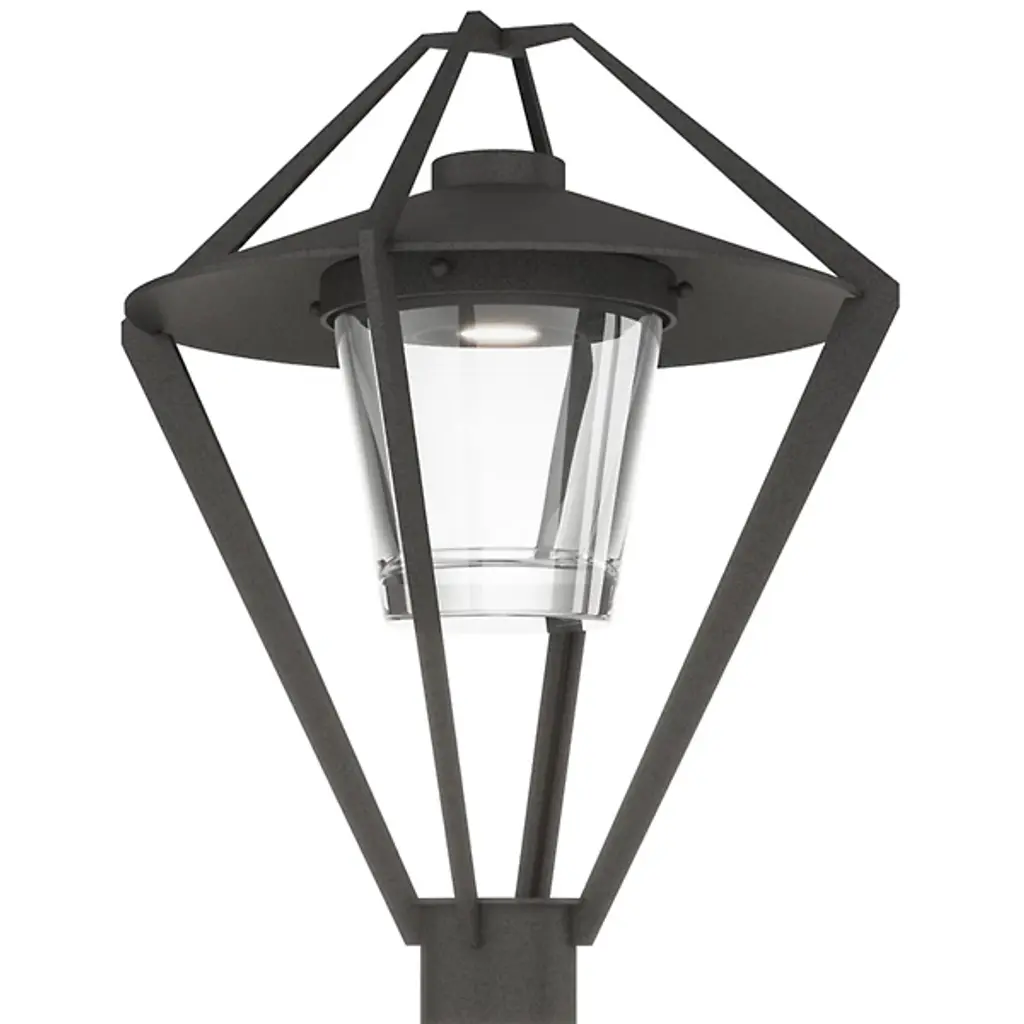 The Stellar Outdoor Post Light by Hubbardton Forge is a modern take on a timeless lantern design. It features an open cage design that surrounds a glass shade and the light source within, giving it an airy and contemporary look to light the way along a walking path. This fixture is available in a range of coastal finishes, which are designed to withstand harsh environments and weather conditions. Each post light is handcrafted by Hubbardton Forge's team of skilled artisans in Castleton, Vermont.