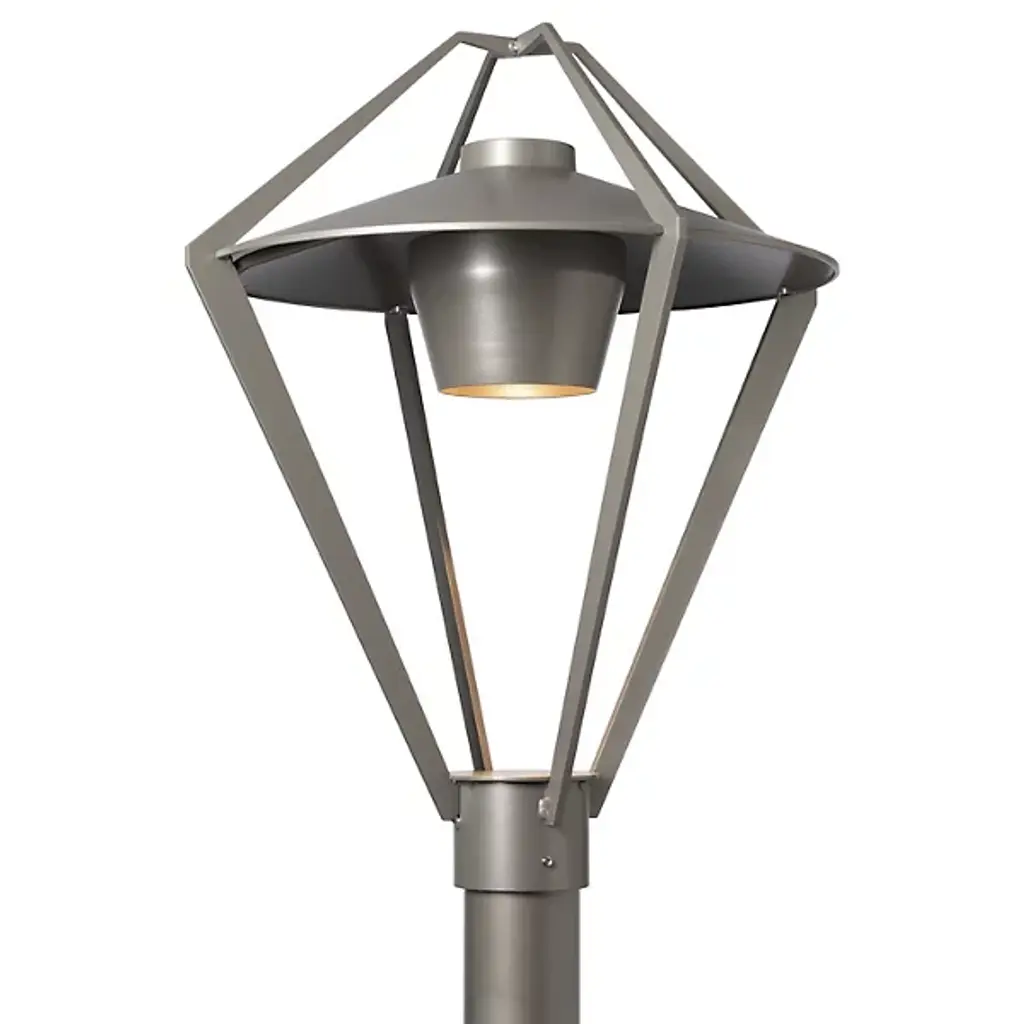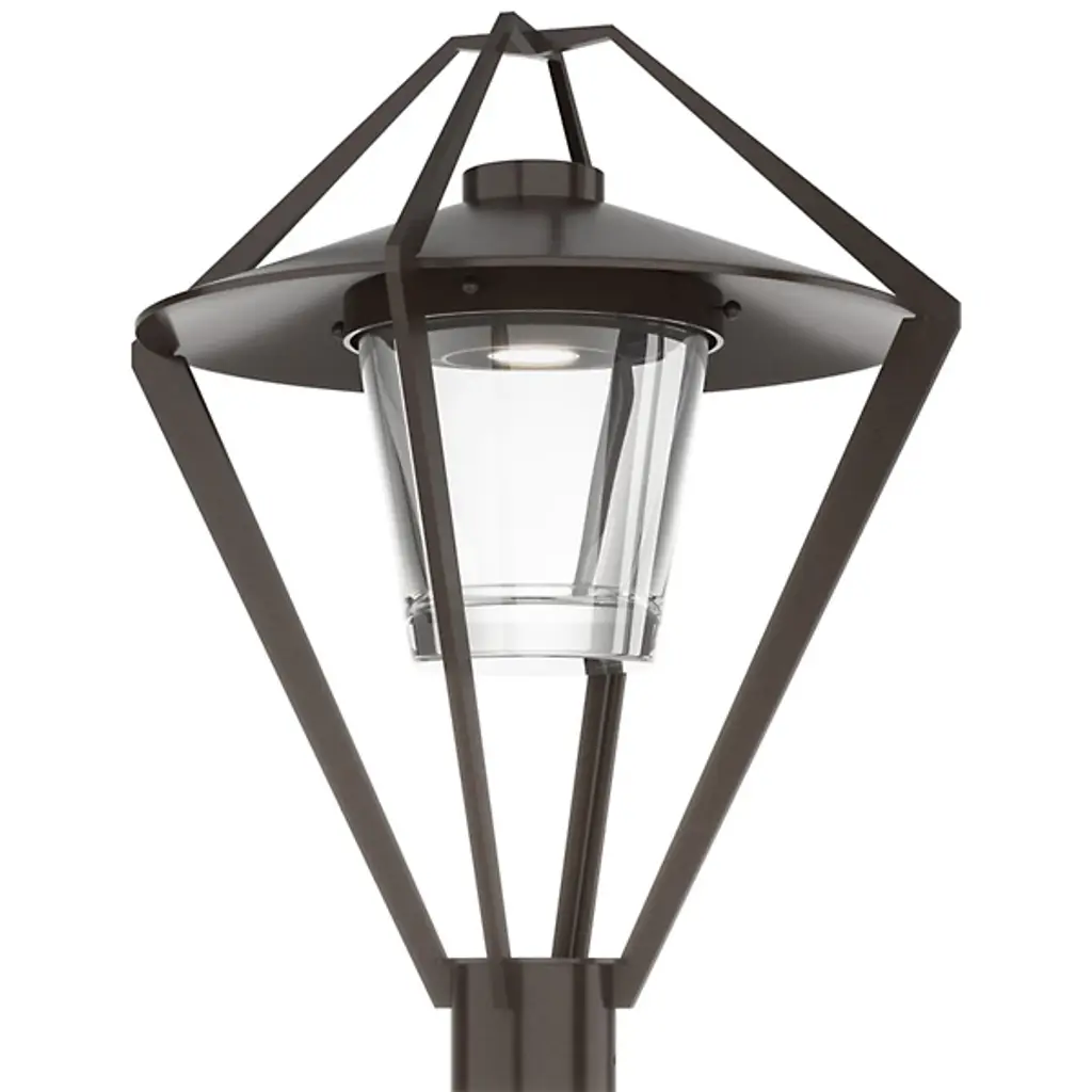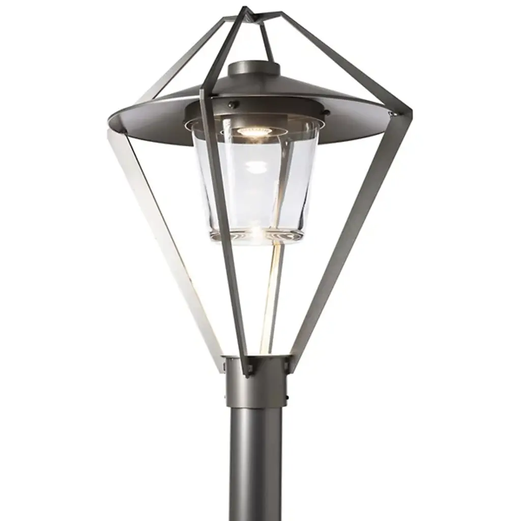 The Stellar Outdoor Post Light by Hubbardton Forge is a modern take on a timeless lantern design. It features an open cage design that surrounds a glass shade and the light source within, giving it an airy and contemporary look to light the way along a walking path. This fixture is available in a range of coastal finishes, which are designed to withstand harsh environments and weather conditions. Each post light is handcrafted by Hubbardton Forge's team of skilled artisans in Castleton, Vermont.