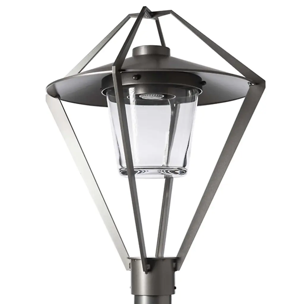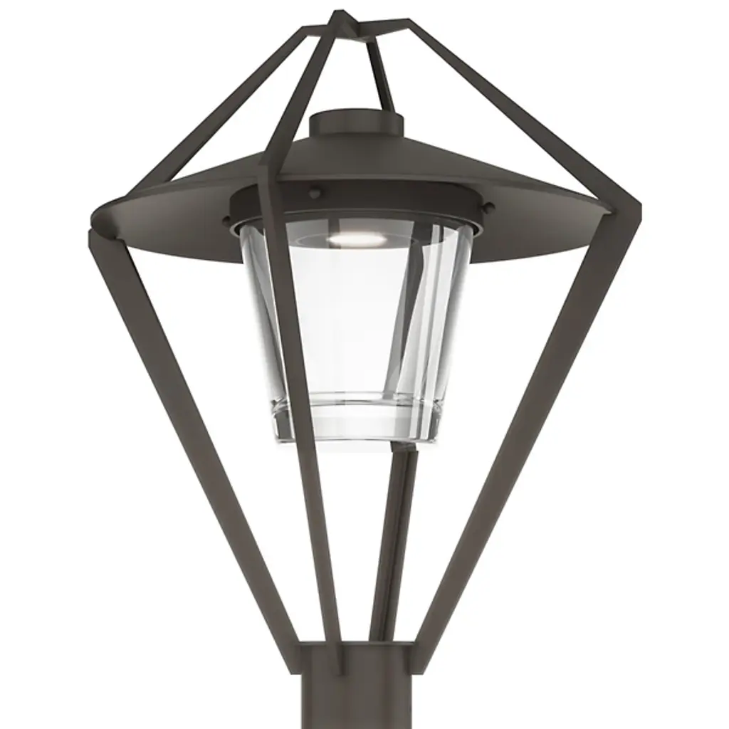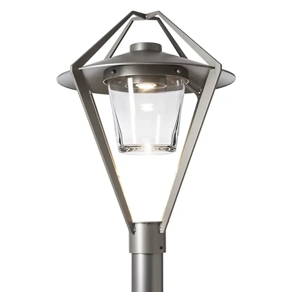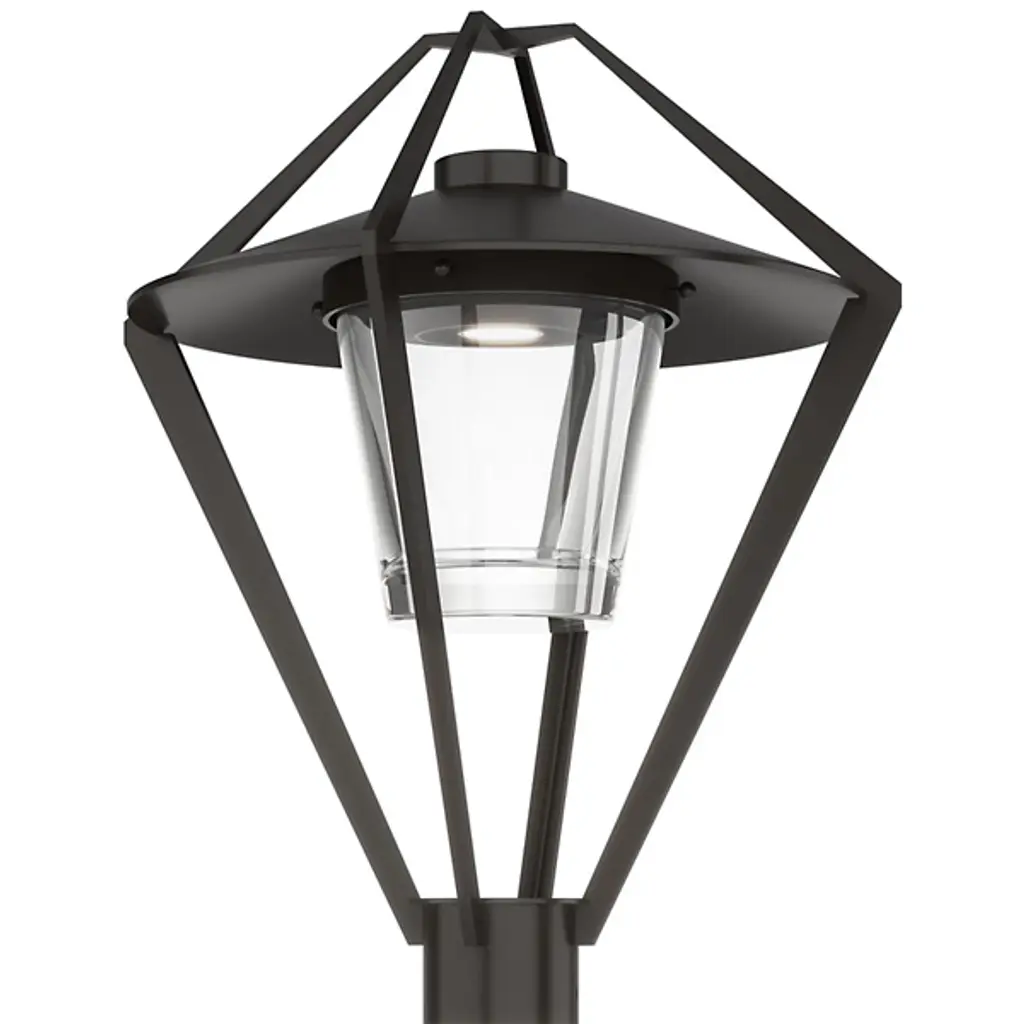 The Stellar Outdoor Post Light by Hubbardton Forge is a modern take on a timeless lantern design. It features an open cage design that surrounds a glass shade and the light source within, giving it an airy and contemporary look to light the way along a walking path. This fixture is available in a range of coastal finishes, which are designed to withstand harsh environments and weather conditions. Each post light is handcrafted by Hubbardton Forge's team of skilled artisans in Castleton, Vermont.
