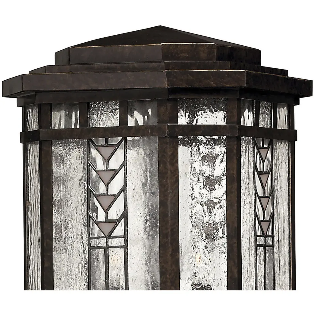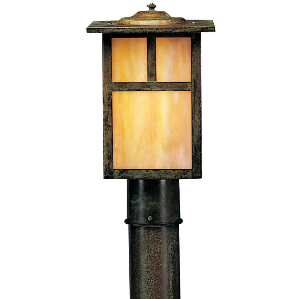 Tahoe makes a classic Arts & Crafts design statement in cast aluminum construction with panels of clear seedy water glass and copper foil art glass accents.