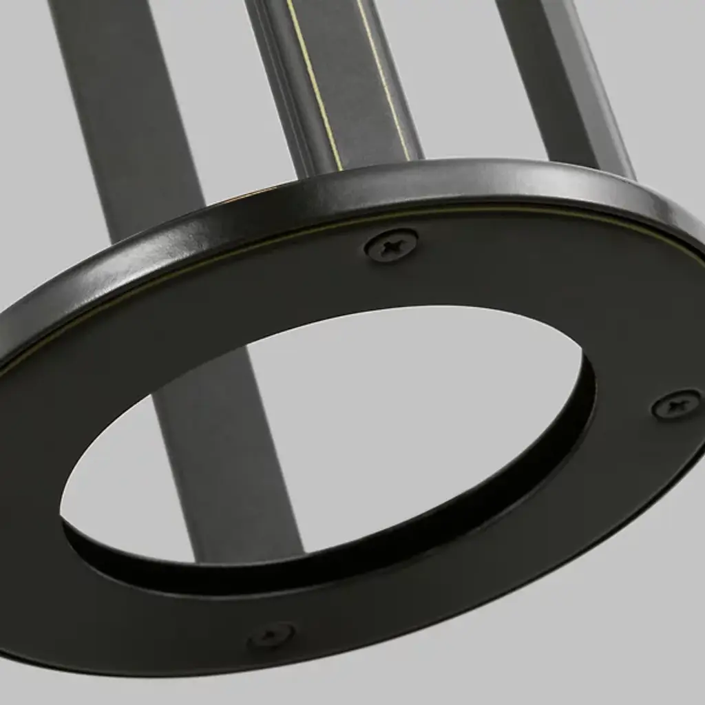 The Union LED Post Light from Visual Comfort Studio, formerly known as Sea Gull Lighting, satisfies with a clean architectural silhouette and an airy glow. The modern piece features a durable aluminum construction for all seasons. Here, cylindrical shapes conceal the light source for a magical note. Long metal lines in between produce a graphical silhouette that complements modern architecture. While on, clean LED light glazes the interior of the metal lines and scatters out as a soothing glow.