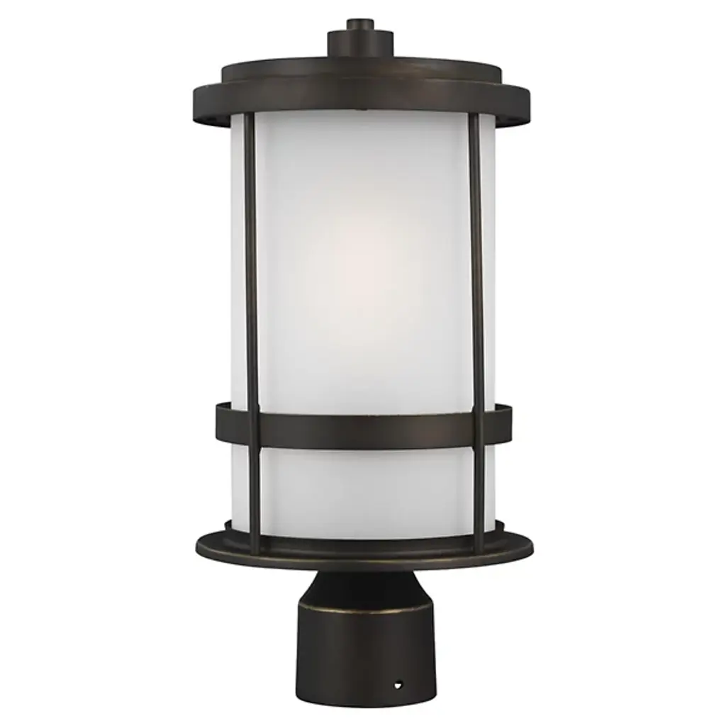 Bring light to your outdoor spaces with the classic curves of the Wilburn Outdoor Post Light from Generation Lighting, formerly known as Sea Gull Lighting, Constructed as an update of a traditional lantern design, it’s framed in aluminum and steel, tucking wet-listed lamping beneath a cylinder of satin-etched glass with a post-mount below. This positioning mellows direct glare at eye level while still creating a blaze of ambient light that suffuses its surroundings. The post, as it happens, is not included with this fixture.