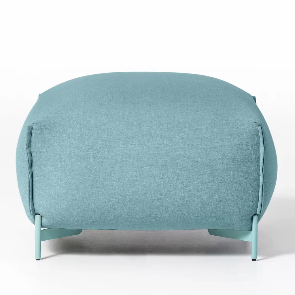 Playfully reminiscent of a "mochi" - Japanese traditional rice cake - this pouf flaunts a fresh monochromatic look with clean lines of unmistakable contemporary inspiration. The rich padding ensures the seat's plumpness is covered in light-blue fabric, its hue harmonizing with the finish of the sleek metal feet that offer steady support. Apt for indoor and outdoor use.