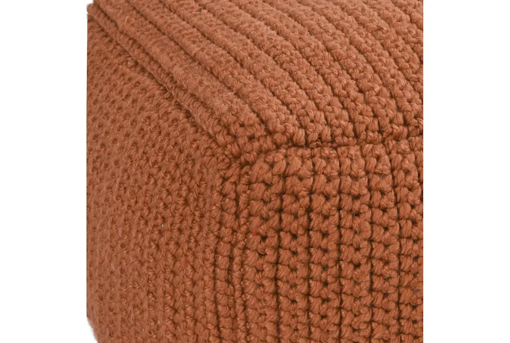 18x18x14 Orange Brown Terracota Performance Knit Polyester Indoor Outdoor Pouf | Square | Machine Washable