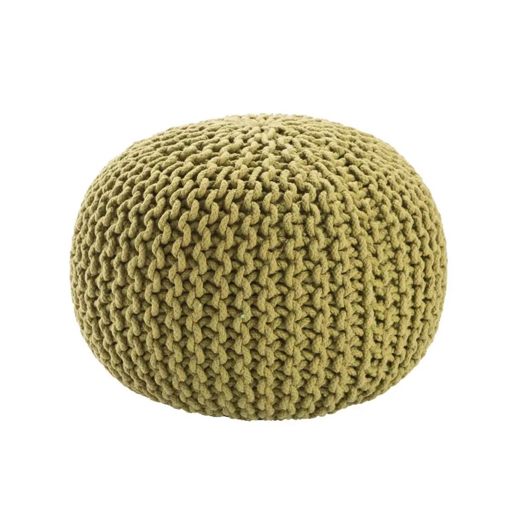 The charming Spectrum Pouf collection offers an array of colors to casual and contemporary spaces. This cotton pouf features a chunky knit weave for inviting style and handmade appeal. Perfect as a comfy ottoman or convenient as extra seating in a living space, this vibrant green floor cushion provides a versatile accent.