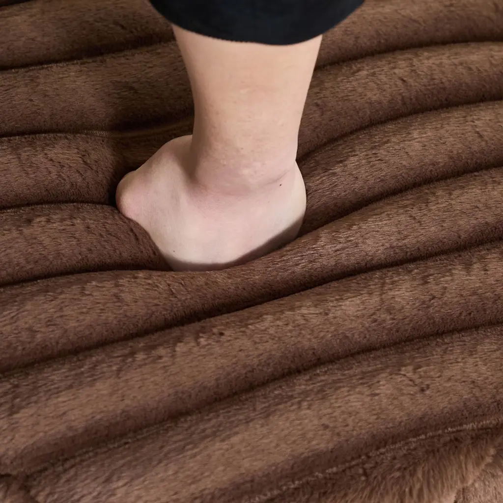 22.05"wide Upholstered Round Pouf Ottoman Foot Rest With Black Metal Legs,faux Fur Footstool For Living Room Bedroom Entryway. Brown