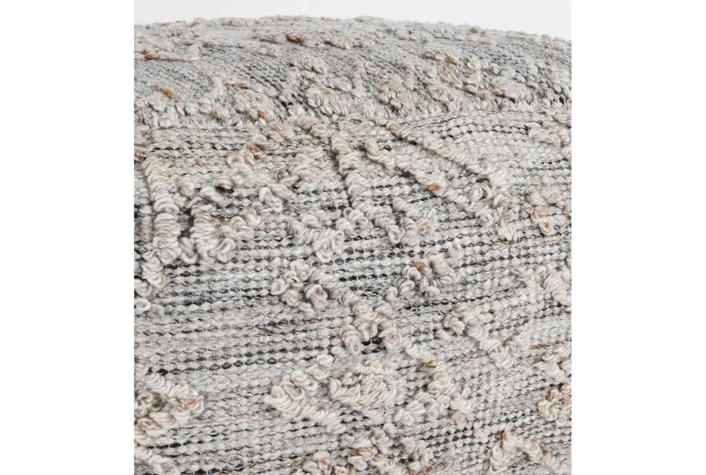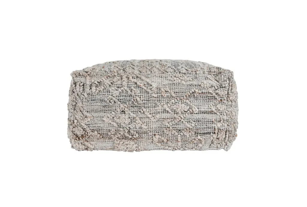 Enhance your living space with the versatile and weather-resistant 24x24x12 Beige Grey Polyester Knobby High Performance Indoor Outdoor Pouf. Perfect for dorm rooms or outdoor areas, this rustic pouf offers both style and functionality. Made from 100% polyester, it features a unique knobby texture that adds a touch of charm to any setting.