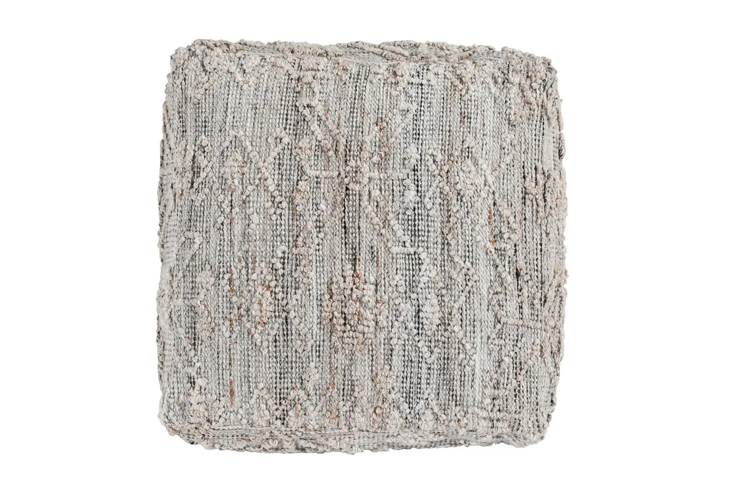 24x24x12 Beige Grey Polyester Knobbyhigh Performance Indoor Outdoor Pouf | Square | Weather Resistant