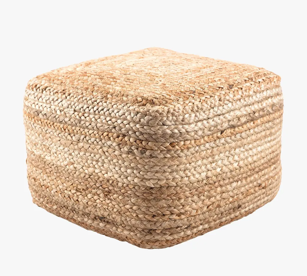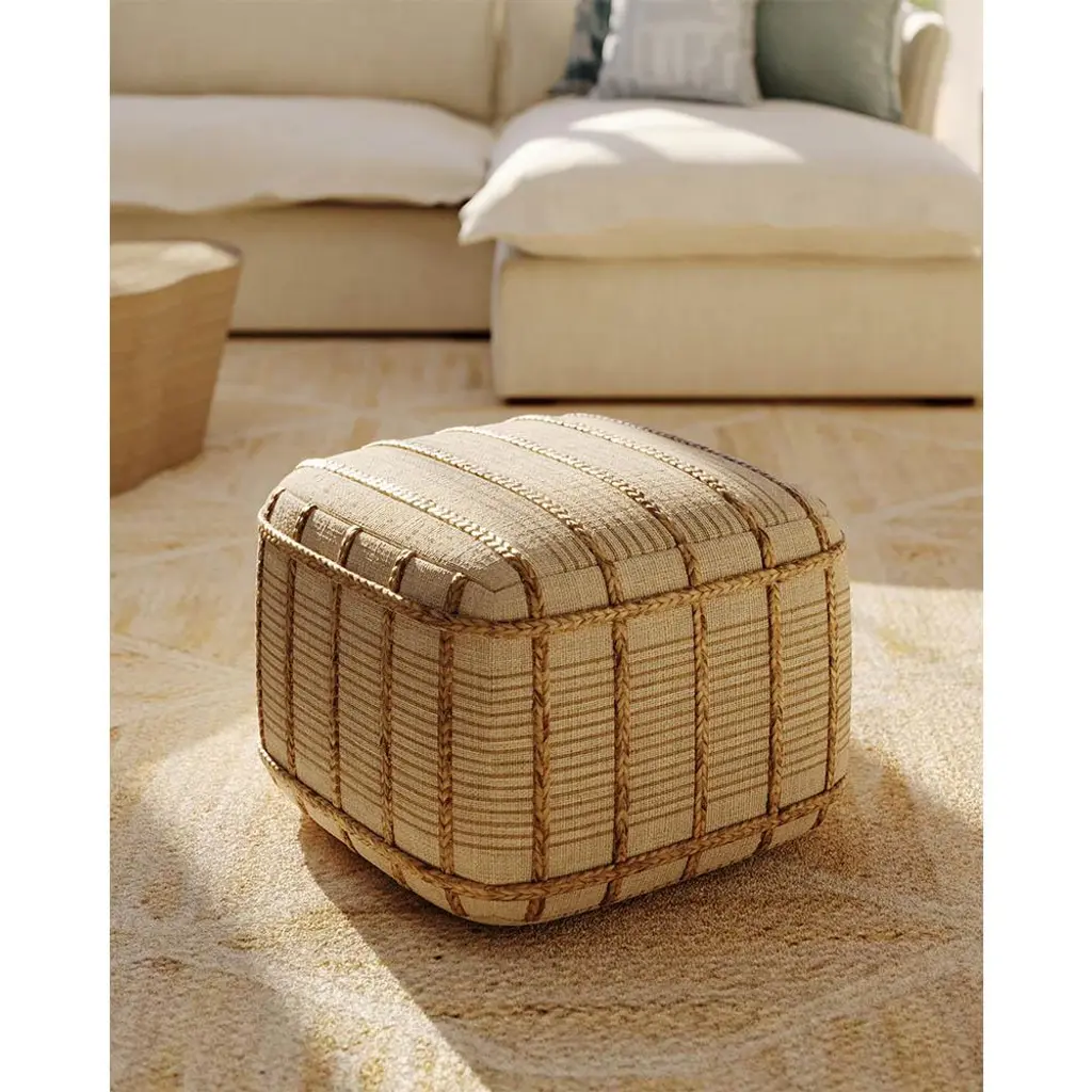 Aelin Coastal Beach Cream Cotton Braided Jute Square Pouf