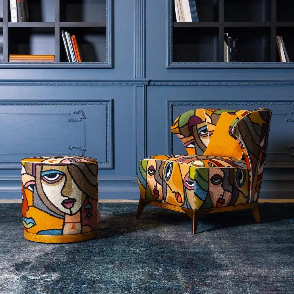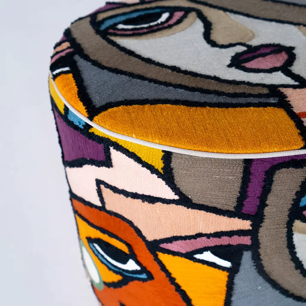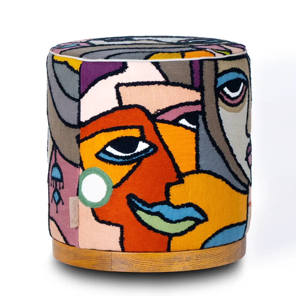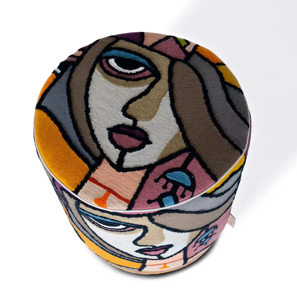 The cylindrical pouf Agostina is an ideal object to make every corner of the house fun. The wooden base can be customized in your favorite colors and combined with the upholstery. Patchwork fabric art. Women, handmade fabric in Italy with artisan looms.