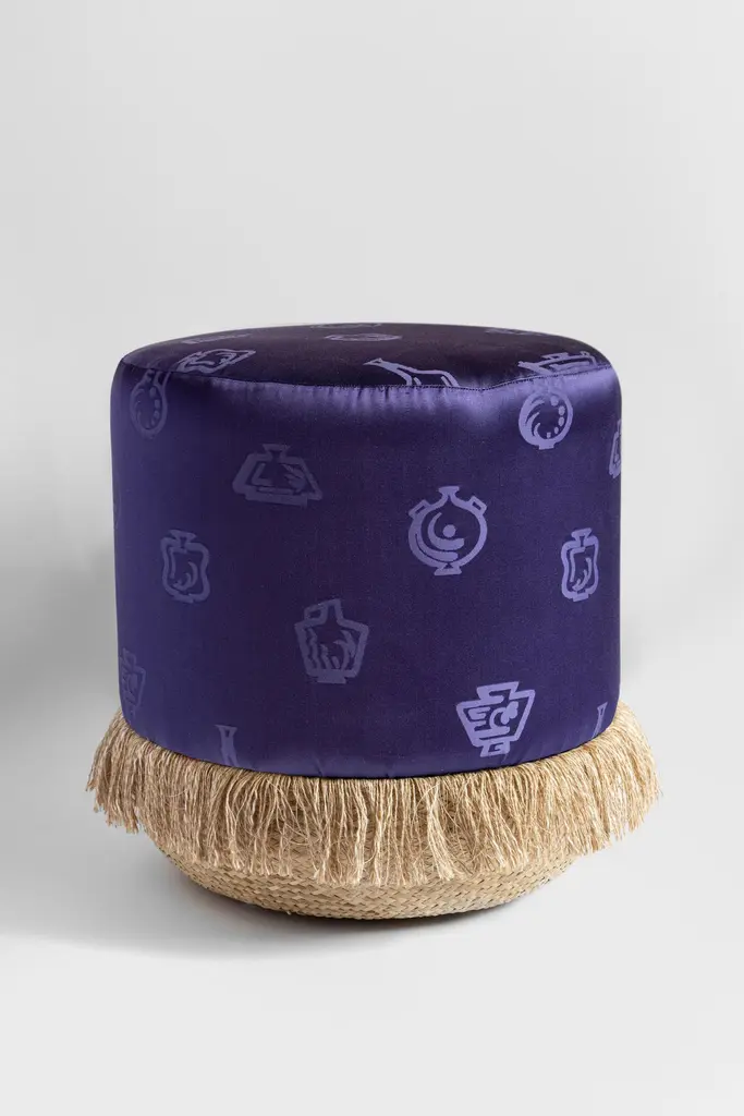 I pouf Grand Tour by Vito Nesta sono un complemento d'arredo unico, eclettico emblema del Made in Italy. Ogni pouf è composto da una parte superiore morbida, i tessuti sono un'esclusiva per Grand Tour della rinomata tessitoria Rubelli, mentre la struttura viene prodotta in Veneto ed è caratterizzata da una base in cesta con frange in lino.Questo pouf riporta il decoro Alchimia, disegnato da Gio Ponti nella colorazione Blu.Ogni Pouf è circolare con un diametro di 45cm ed è alto 45cm.