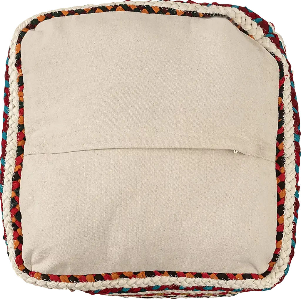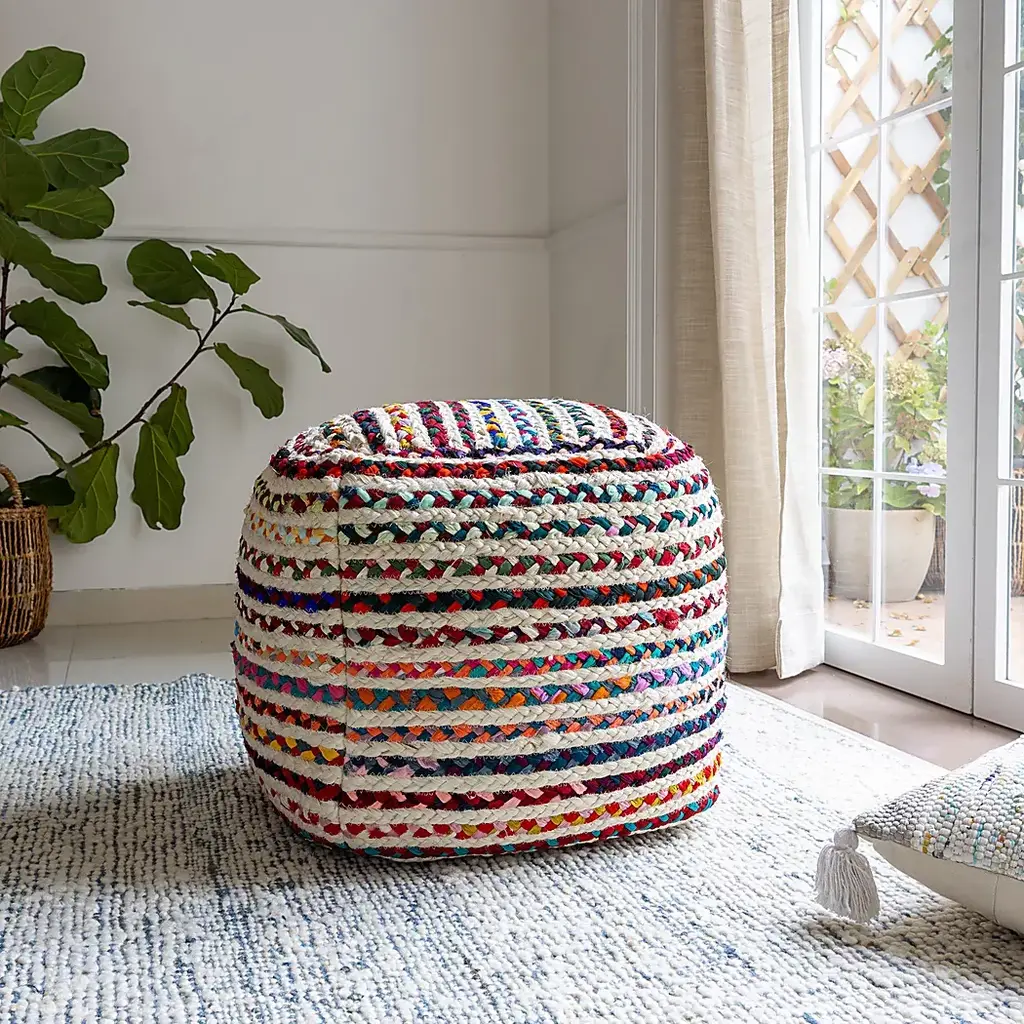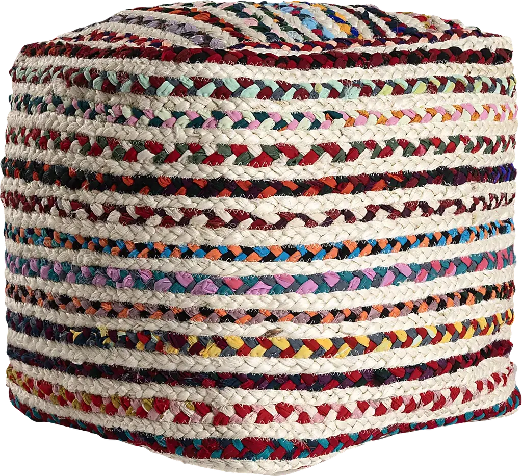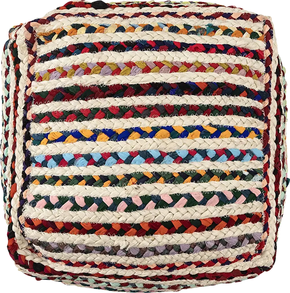 Expertly hand-braided, this pouf combines the natural texture of 50% jute with the durability of 50% polyester. Its striped pattern and Bohemian style make it an eclectic and transitional piece, perfect for casual settings. Use it as an ottoman, extra seating, or an accent piece to add a touch of bohemian flair to any room. The multicolor design enhances its visual appeal, while the EPS ball filling ensures comfort and support. This Square pouf is easy to maintain and reposition. Elevate your interior with this unique and functional pouf, ideal for any living space.