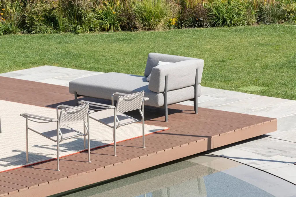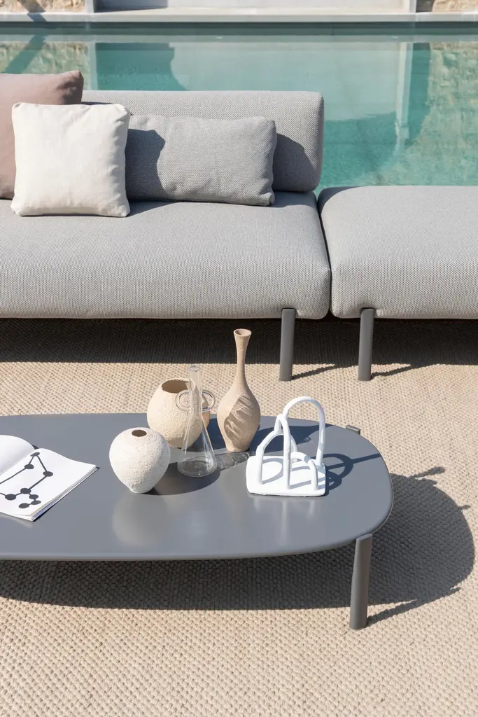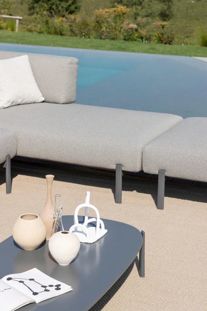 Alias T05+T07+T06 Ten Outdoor Sofa Set and Pouf in White w Sand Lacquered Frame by PearsonLloydModular corner element for outdoor use with lacquered die-cast aluminium legs and stainless steel frame.Seat, back and armrest with removable cover in fabric or eco-leather.Available in version right or left. Modular dormeuse element for outdoor use with lacquered die-cast aluminium legs and stainless steel frame.Seat, back and armrest with removable cover in fabric or eco-leather.Available in version right or left. Ottoman for outdoor use with lacquered die-cast aluminium legs and stainless steel frame.Seat with removable cover in fabric or eco-leather.Tom Lloyd and Luke Pearson founded PearsonLloyd in 1997 and since then completed a wide range of projects. The studio uses an investigative approach based on research that combines in a balanced manner the creation, efficiency, user needs and ergonomics. Some of their awards received include the Gold DBA Design. Effectiveness award and the distinction of the Royal Designers of Industry. In 2011 they designed the eleven upholstered elements, followed by the side tables (2012) and the high back version (2015) which naturally complete this system. They live and work in London.Additional Information:Material: Textured lacquered aluminum, upholsteryFrame finish: Sand (A047)Seat finish: Tempotest® fabric A white (PT01)Dimensions: Angular (T05) DX: 173 W x 90 D x 72 H cm Dormeuse (T06): 173 W x 90 D x 72 H cmPouf (T07): 90 W x 85 D x 41 H cmSeat Height: 41 cmAvailable in other frame finish options: White (A019), black (A011), graphite grey (A022), light grey (A051)Available in other upholstery options: Stamskin® Top, light grey (PT02), dark grey (PT03), Living OutdoorAvailable in other various options