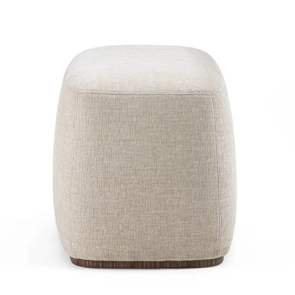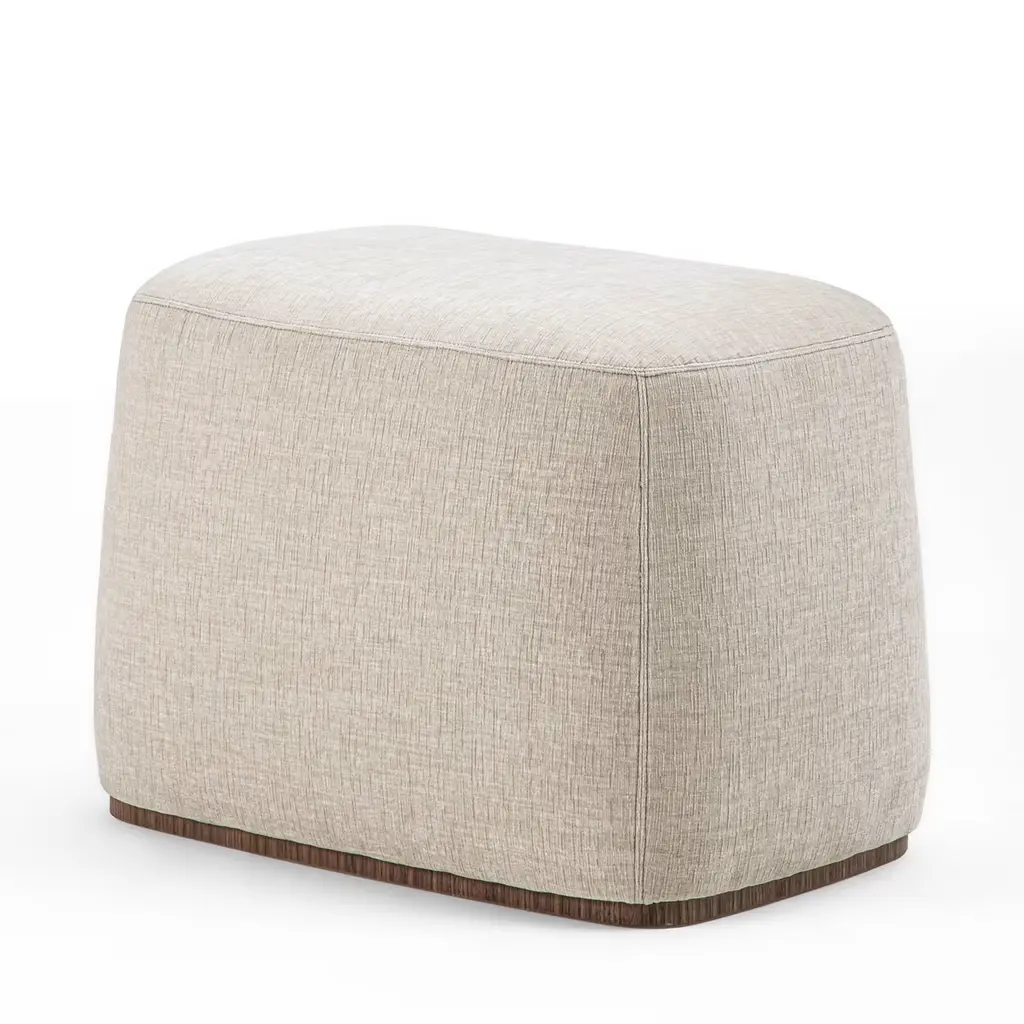 Solidity and softness effortlessly coexist in this refined pouf by Giuseppe Carpanelli, where subtle curves outline the generous seat supported by a sturdy Canaletto walnut base. Superb for enjoying a relaxed aperitif or putting up one's feet after a long day, it distills quiet elegance with its clean lines and refined light-toned fabric upholstery. Please explore available cover and finishing variants with the Concierge.