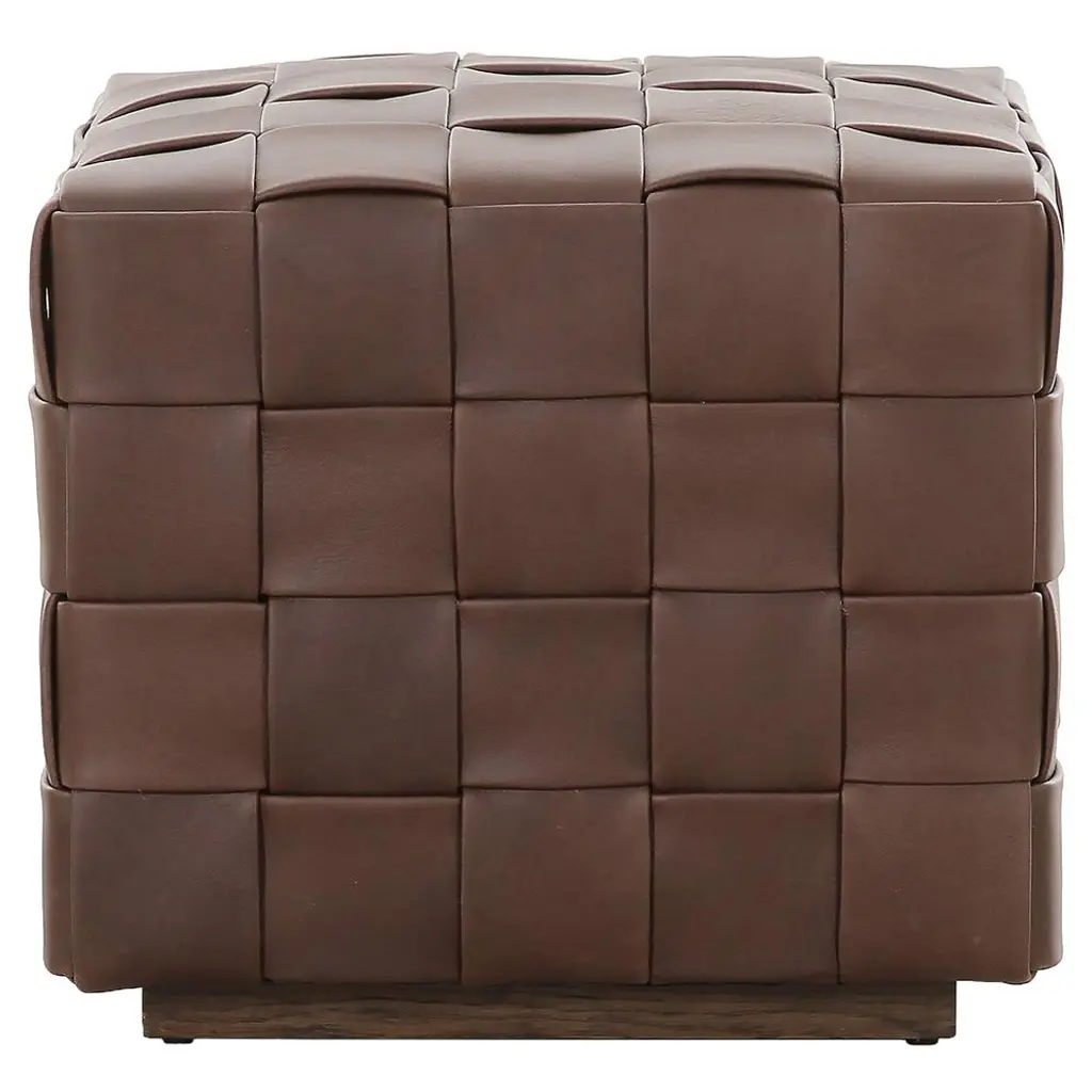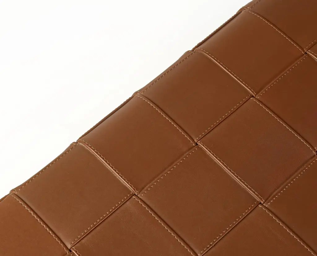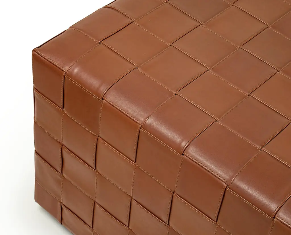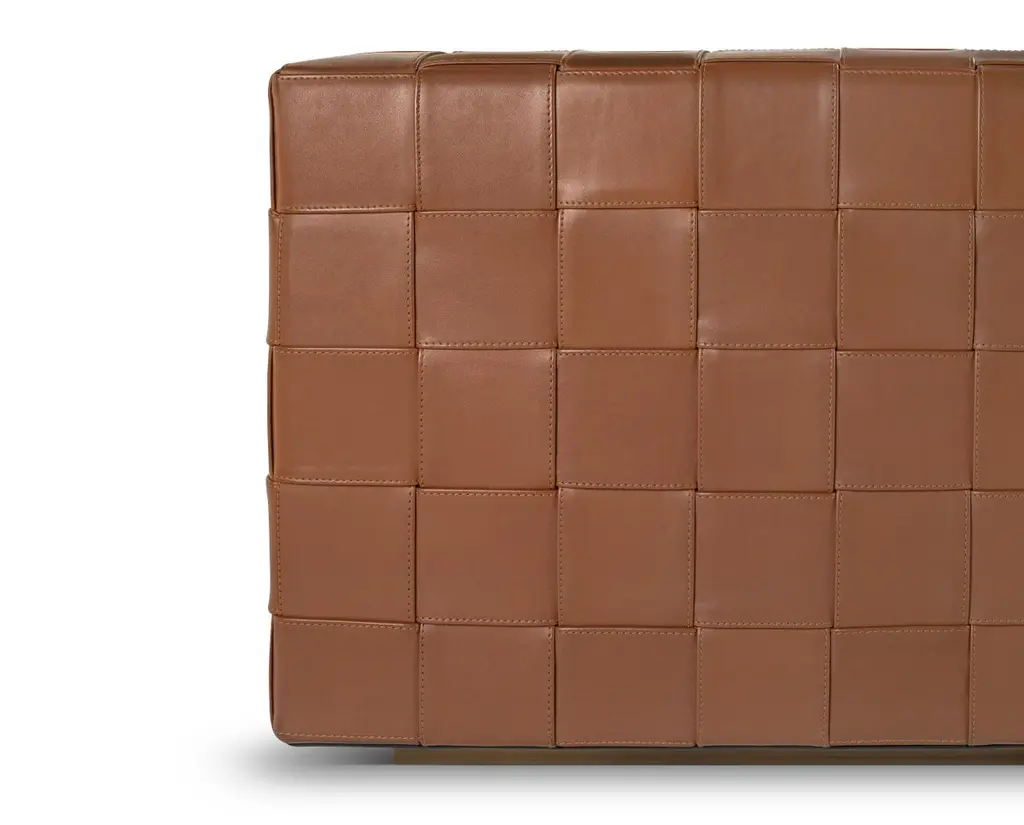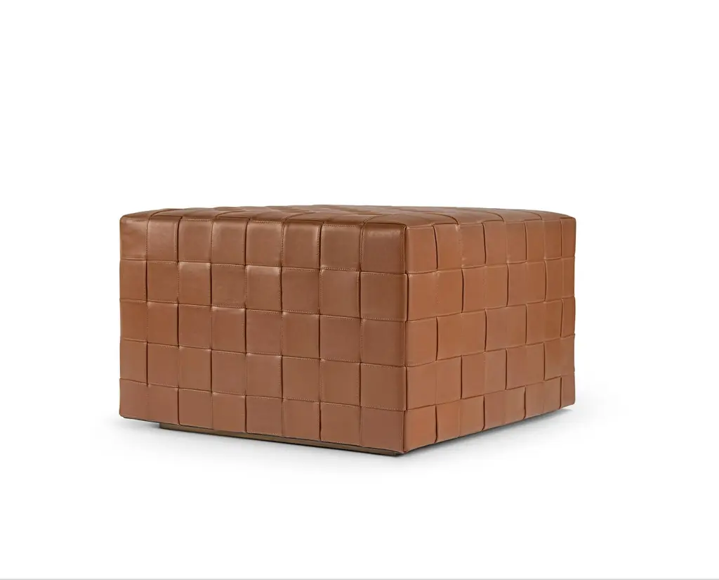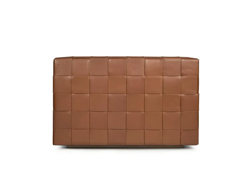 Arizona pouf by MadhekeDimensions: D 61.5 x W 61.5 x H 41 cmMaterials: Leather, wood.Classic soft leather weave with stitched edge detail and brass base.Reflecting the finest in craftsmanship, innovation and heritage, Madheke creates tailored and crafted goods that reflect understated classic elegance, blending tradition and contemporary - vintage and modern. Rare skins, crafted metals and fine veneers seamlessly meet high performance materials and tectonic detailing in a language inspired by old world traditions, for the contemporary world. Founded by LOCO Design, Madheke creates tailored and crafted goods.