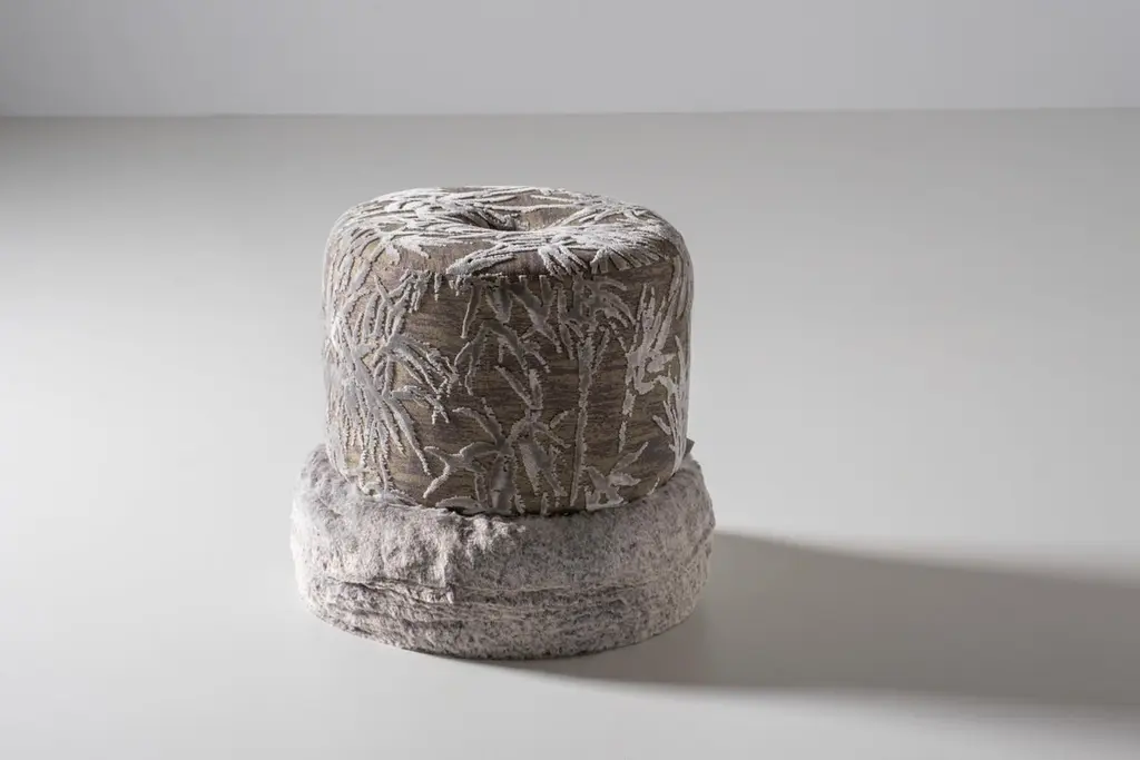 Art Deco Adonis Pouf Ottoman Jacquard Faux Fur Handmade Portugal By Greenapple