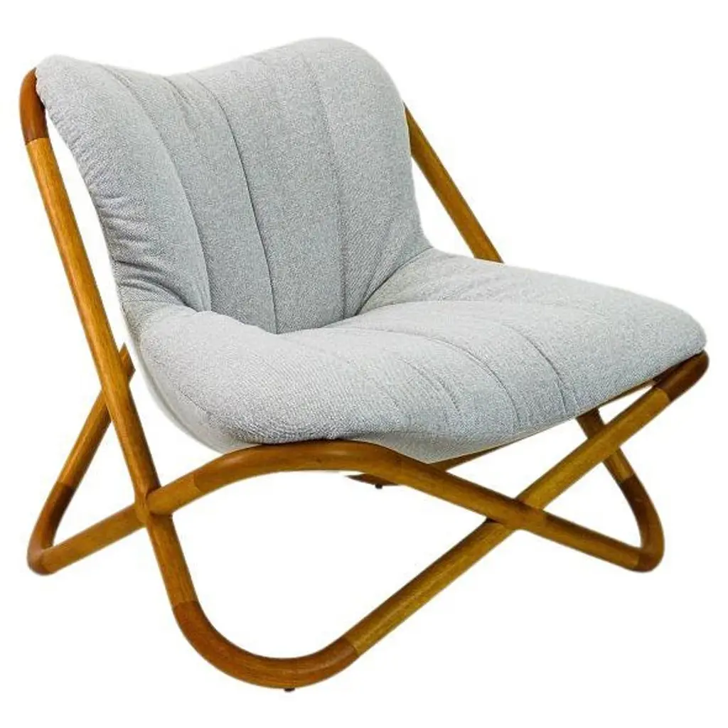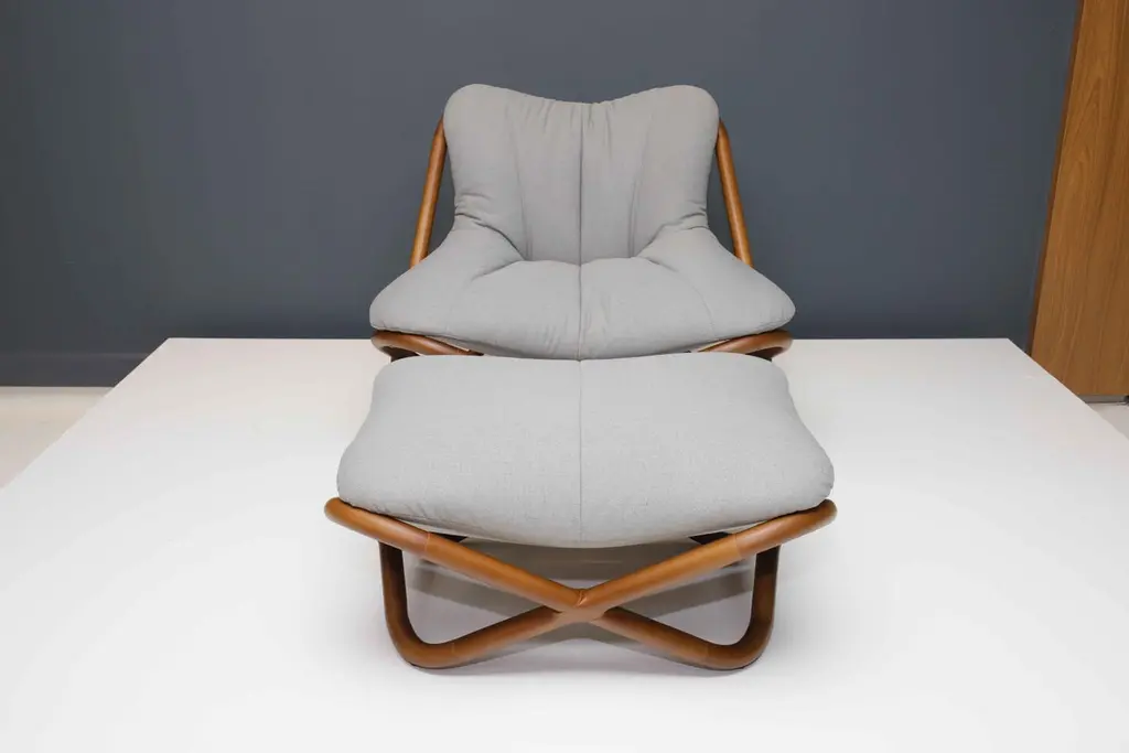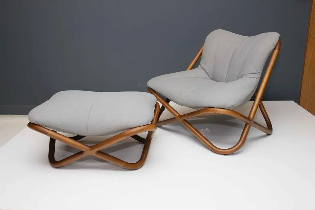 Armchair with structure in solid wood and upholstered fiberglass.Armchair + stoolThe “Astral” armchair is Lattoog's latest release for Empório das Cadeiras and is the youngest of a family of furniture affectionately baptized by the designers of Série Viralatas. two pieces of furniture, in general modernist classics, are fused (or syncretized) to result in a third design of an original piece of furniture, completely different from the others, but with a strong “genetic load” of its generative matrices. A concept invented by Lattoog in 2005 that has been a great influence for designers from Brazil and abroad as well. Here, strong but subtle references to Brazilian roots and culture are presented: Miscegenation, syncretism and “viralism”.Astral is born from the fusion of the shapes of the Tank armchair in curved wood by the famous Finnish architect Alvar Aalto with the BKF armchair (also known as Butterfly) by the Argentine group Austral, created in 1938. The result is a piece with a strong conceptual-cultural narrative that regardless of its visual characteristics. An attribute that the designers Leonardo and Pedro titled a few years ago the “Fourth Dimension of the Object”.
