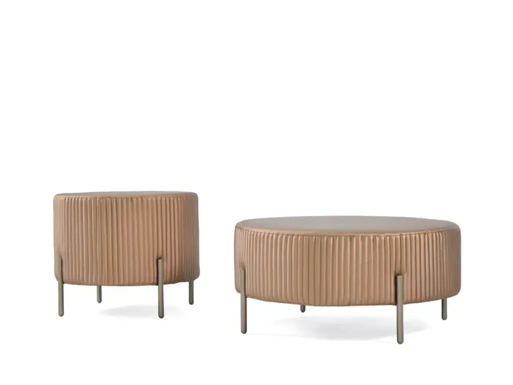 ATHENS is an elegant pouf and piece of furniture with soft lines that combines style and comfort in any space. Its unique design features external horizontal stitching, highlighting the iconic geometric embroidery that makes it distinctive.It is crafted with a multilayered wood panel upper and a sturdy wood or metal lower base. The base is supported by four metal legs, available in various metallic finishes. This adds a touch of modernity and versatility to its vintage-inspired design.Structure: Multilayered wood panel upper, with wood or metal lower baseCushion: Shaped polyurethane foam of varying densities, polyester fiberUpholstery: FabricBase: Painted Metal