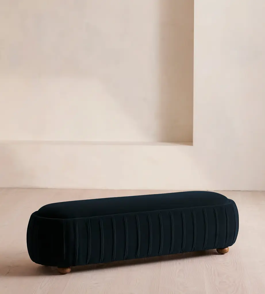 The Pouf Bague derives its name from its unique shape, which mimics the structure of a ring (or "bague" in French) that typically holds a precious stone. Instead of a gemstone, this design features a central padding covered in luxurious frotted blue velvet. The frame of the pouf is crafted from bronze casting, enhancing its elegant and artistic appeal.