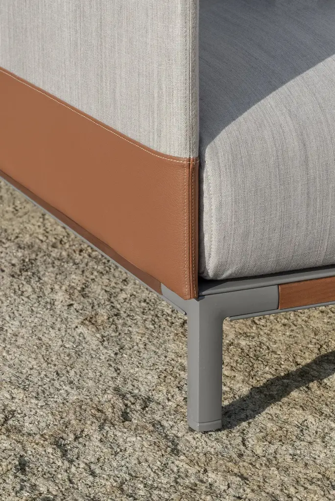 Baia is an outdoor armchair upholstered with neutral colors fabrics, matched with nautical leather details, all materials selected for their stylistic and aesthetic qualities, that ensure their performance in any outdoor context or situation and ensure that the furnishings preserve all their original beauty and function over time. The padding is water-repellent and ‘sealed’ with a special technique that means water runs off and is prevented from penetrating them, All the cushions have easy to remove loose covers and the leather is eco-friendly and specific for outdoor useCostiera+Baia collections are the exciting nautical challenge by Ethimo and Christophe Pillet, a collection of lounge elements born out of an encounter between technical knowhow and aesthetic sensibility, designed to bring the moods, unique style and quality that has always distinguished Ethimo outdoor collection onto yachts and large boats and into yachting clubs. This new range for the nautical work comprises two collections, Costiera and Baia, each with its own characteristics yet sharing the same mood, making them perfect together. Through two seating solution versions, these collections evoke fascinating seascapes and describe the world of sailing in an ideal union of contemporary design and performance.
