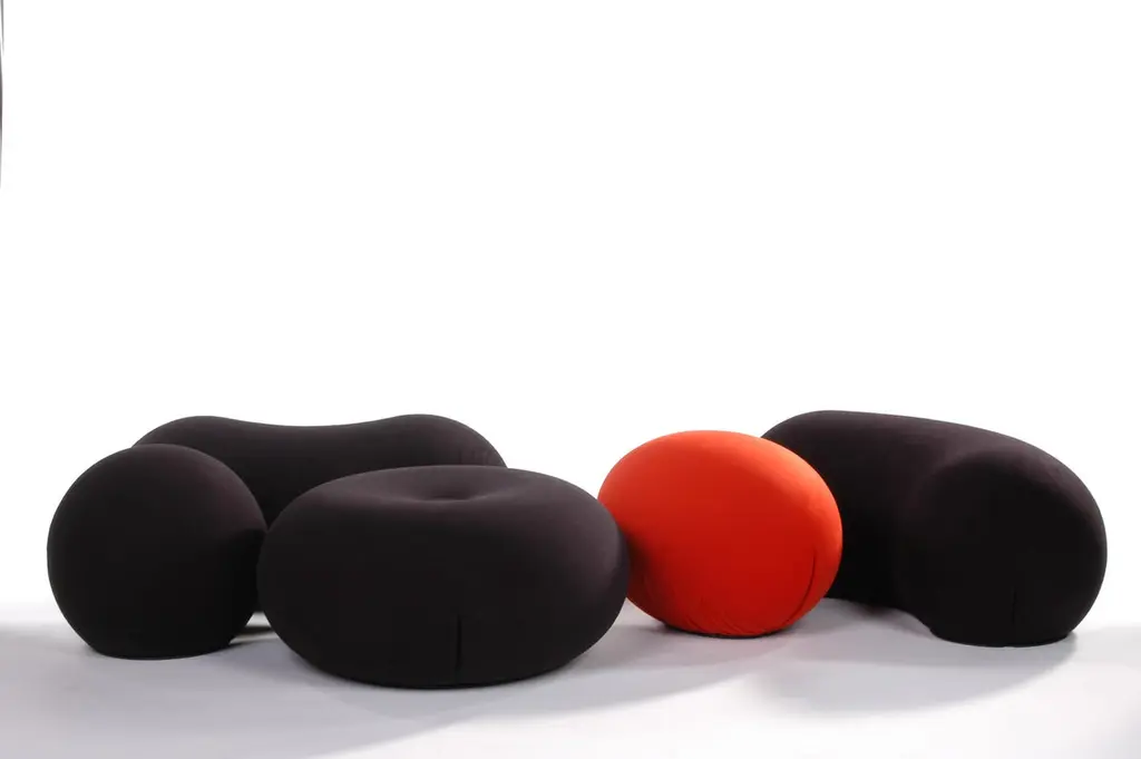This family of minimalist objects, whose ancestor is Tato, emphasizes whatever is strongly visual and chromatic, without of course overlooking the functional. They are at their best in an informal house. You look at them with ease, you move them around with no difficulty, and find out how comfortably elastic seats are.Flexible seating in curved shape for two or more seat in flexible polyurethane, cold-processed without CDC, with internal rigid structure. Two lateral slits keep the removable cover in bi-elastic fabric.