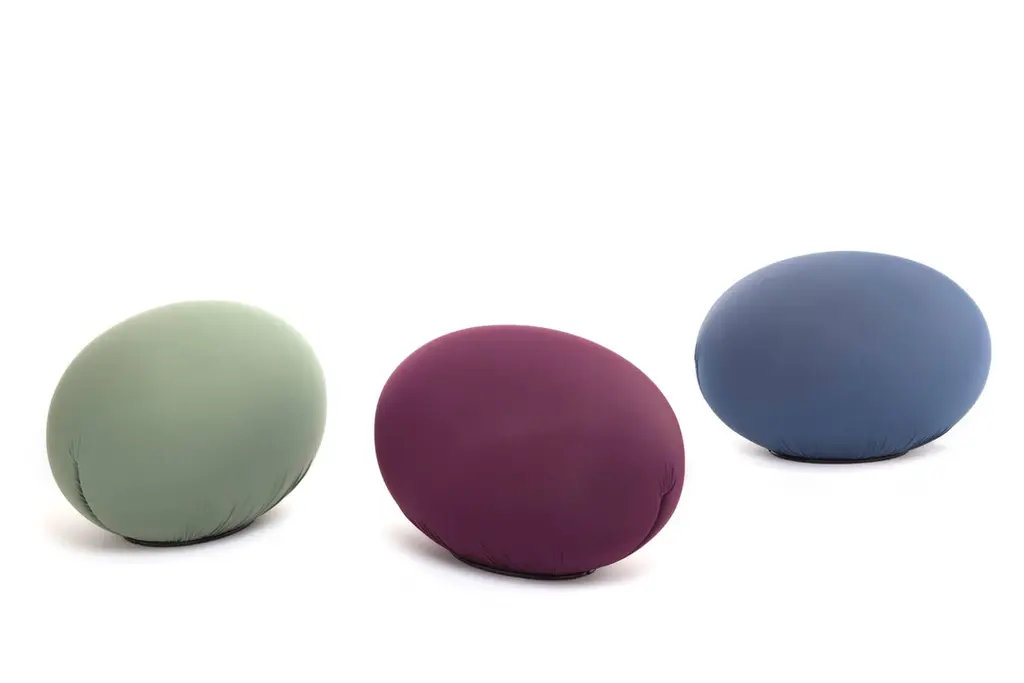 To make pure, elementary, ideal form into something comfortable. Beneath these spheroidal forms, visually striking, but apparently uncomfortable, seemingly useless, the technology of ecological foam rubber, together with a rigid plastic structure, combine to create a way of sitting in anatomical comfort, based on geometric forms that adapt to the human body and then return to their sculpted form, again and again.Flexible seating/footrest in oval shape in flexible polyurethane, cold-processed without CFC, with internal rigid structure. Two lateral slits keep the removable cover in bi-elastic fabric, available in three types and several colours.Born in Campagnola near Reggio Emilia in 1950, Denis Santachiara started his career in 1966 as a designer at the Fiat Style Centre. He makes hi-tech designer objects of great artistic density that he displays in solo and group shows in prestigious locations as the 1980 Venice Biennale and the Grand Palais in Paris. The numerous exhibitions that he has organized include “La Neomerce” at the Triennale in Milan in 1985 and the Pompidou Centre in Paris. He also curated the “New Persona” display for the 1996/97 Florence Biennale. Santachiara has worked with Baleri Italia since 1995 and he is the author of hugely successful ironic and poetic projects such as Mama, Tato and Celine.