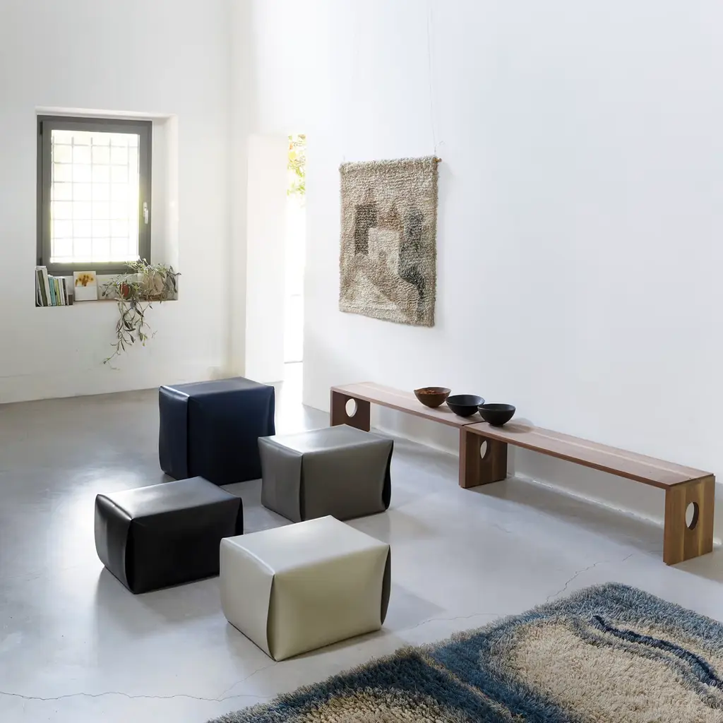 Bao Dark Leather Pouf By Viola Tonucci