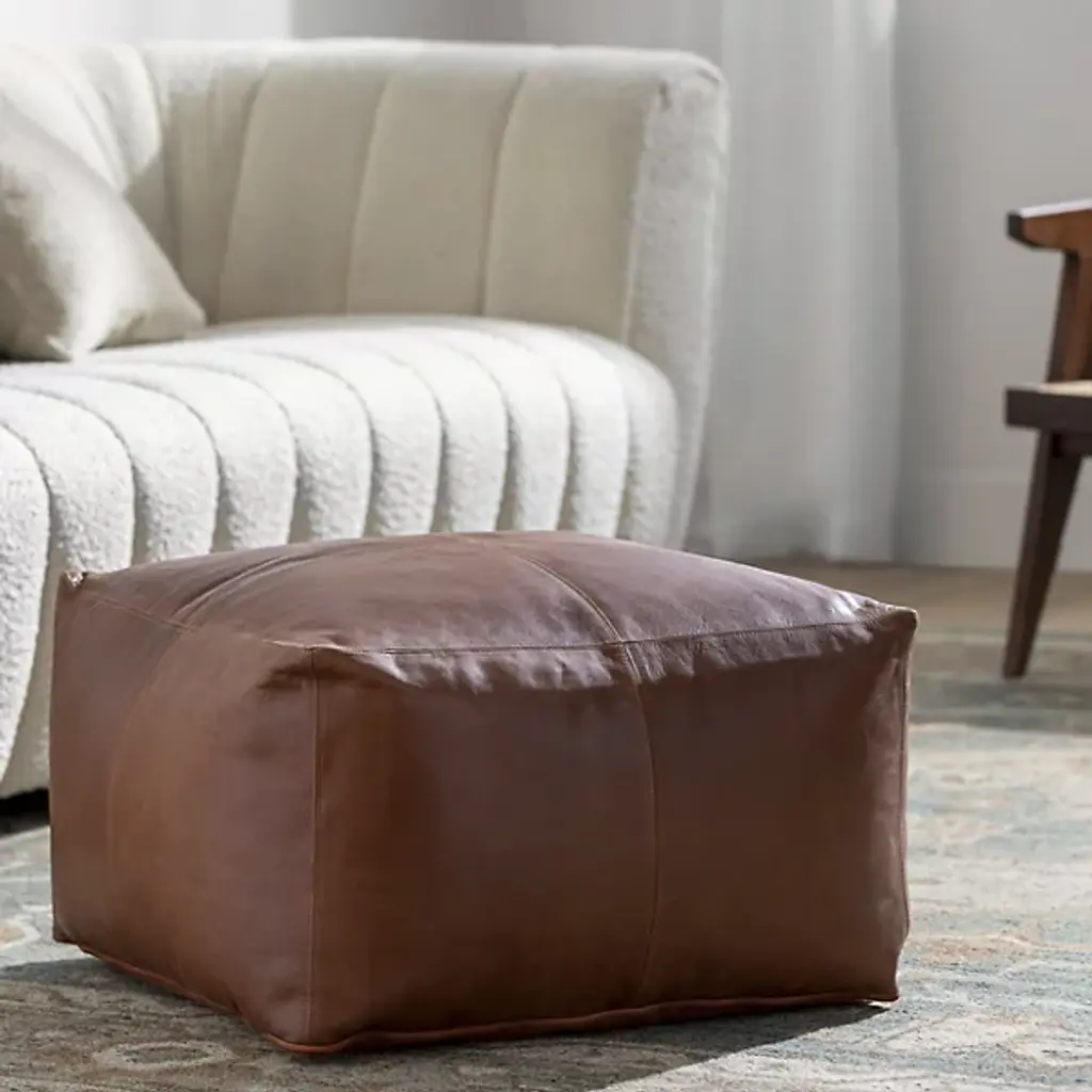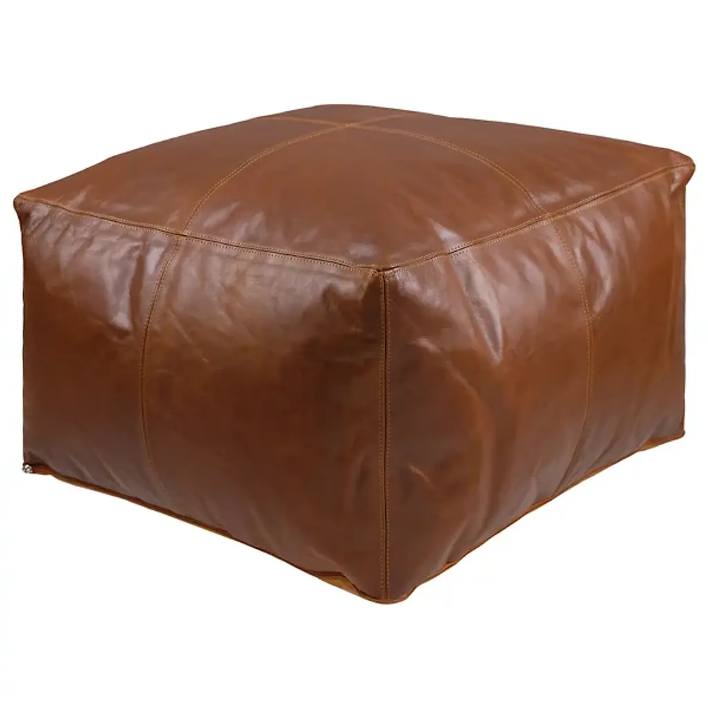 The Barrington Pouf from Surya exhibits masterful leather patchworking through its geometric composition. Created by skilled artisans in India, each panel joins perfectly with its neighbors, while the removable cover ensures lasting beauty. The polybead interior and knife-edge finish maintain its shape through daily use, offering consistent comfort whether used as seating or a footrest. This piece works particularly well in studies, living rooms, or anywhere that benefits from its natural charm. The cotton foundation provides stability while letting the leather take center stage.