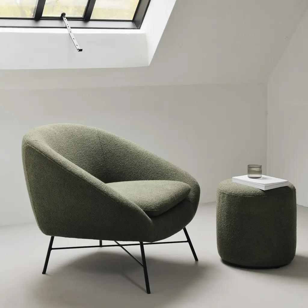 The Barrow Pouf from Ethnicraft, crafted from sumptuous Italian fabrics in rich, vibrant hues, adds a refined yet inviting element to any living space. Designed by Jacques Deneef, this versatile piece effortlessly combines comfort and style, providing extra seating while enhancing a relaxed, elegant ambiance. Highlights