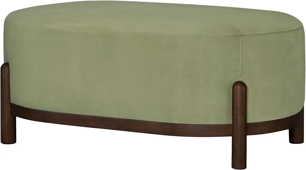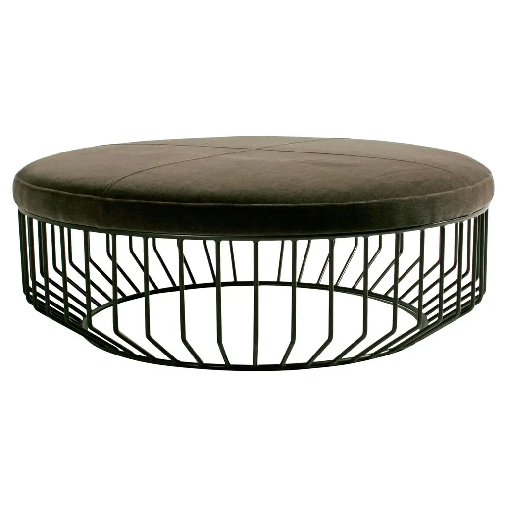 The Belte Collection of poufs designed by Elena Salmistraro draws inspiration from high fashion and is characterized by stunning steel frames tightly enclosing softly padded cushions as if they were belts around dresses. This piece features green fabric upholstery, juxtaposed to the black lacquer of the metal frame. Padded with polyurethane foam and polyester fiber.