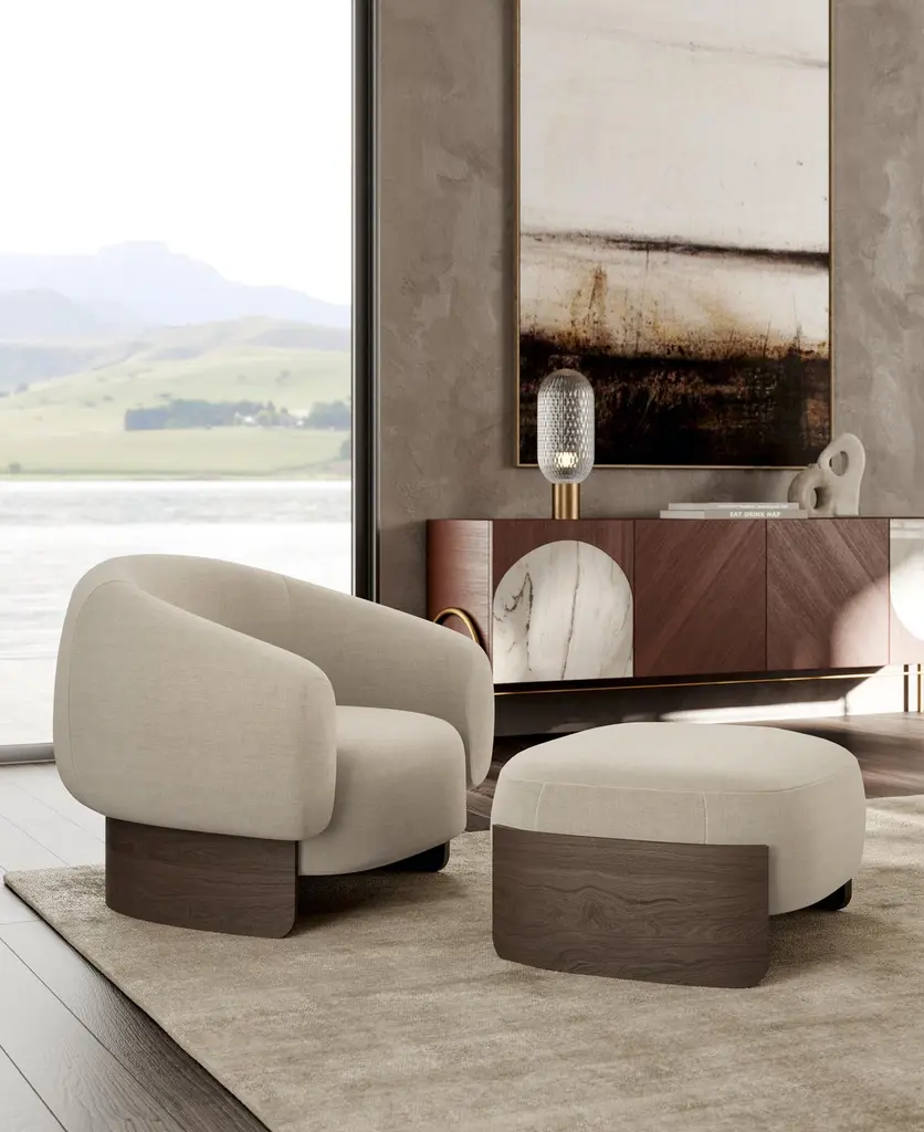 Betty P Carpanese Home Italia Pouff With Ash Wood Base Modern, 21st Century