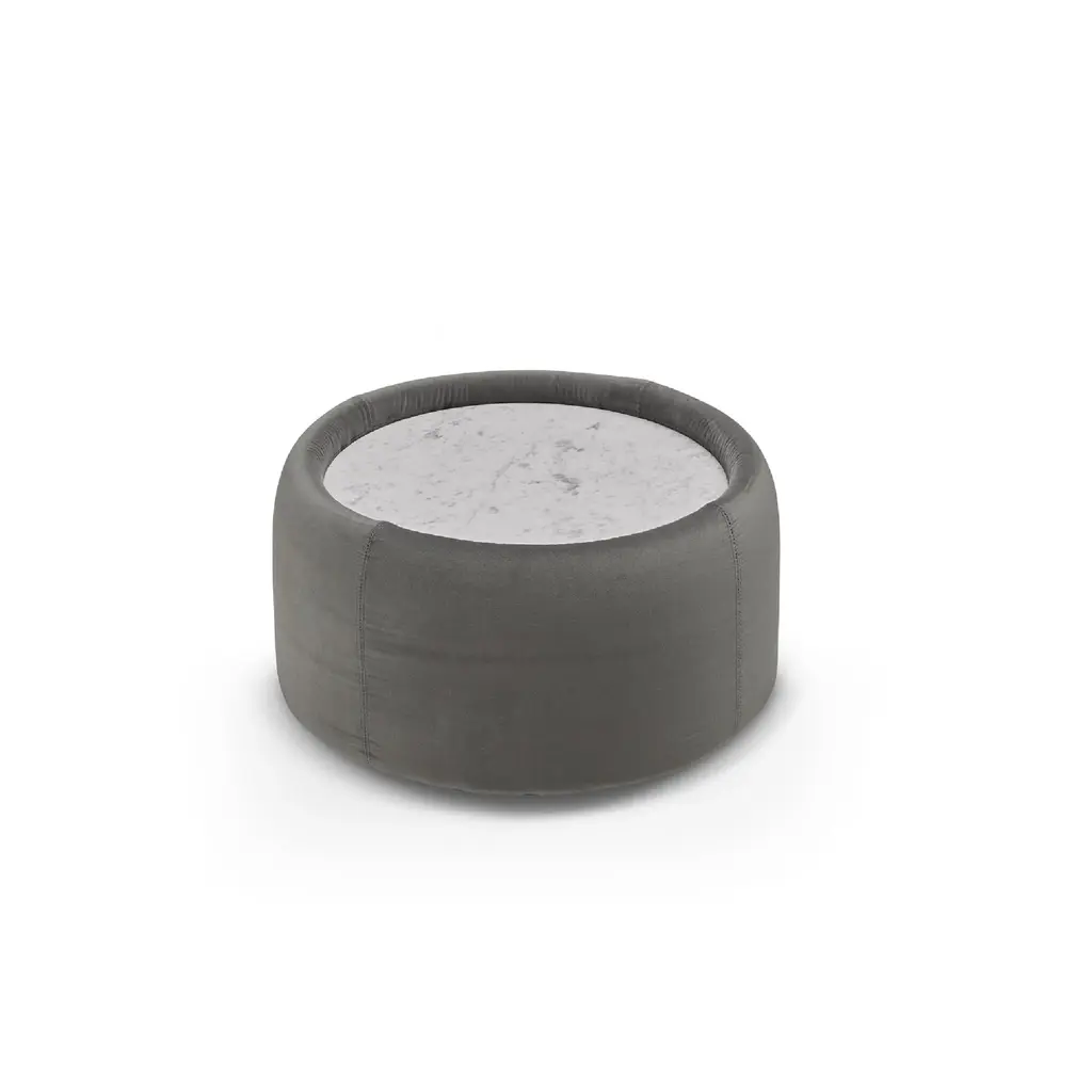 Bikini Island poufs are elements in stress-resistant flame-retardant polyurethane foam in varied densities and polyester fiberfill on wood frame; feet screwed to the frame in black polypropylene. Available in fabric or leather. The Bikini island collection covers are removable.