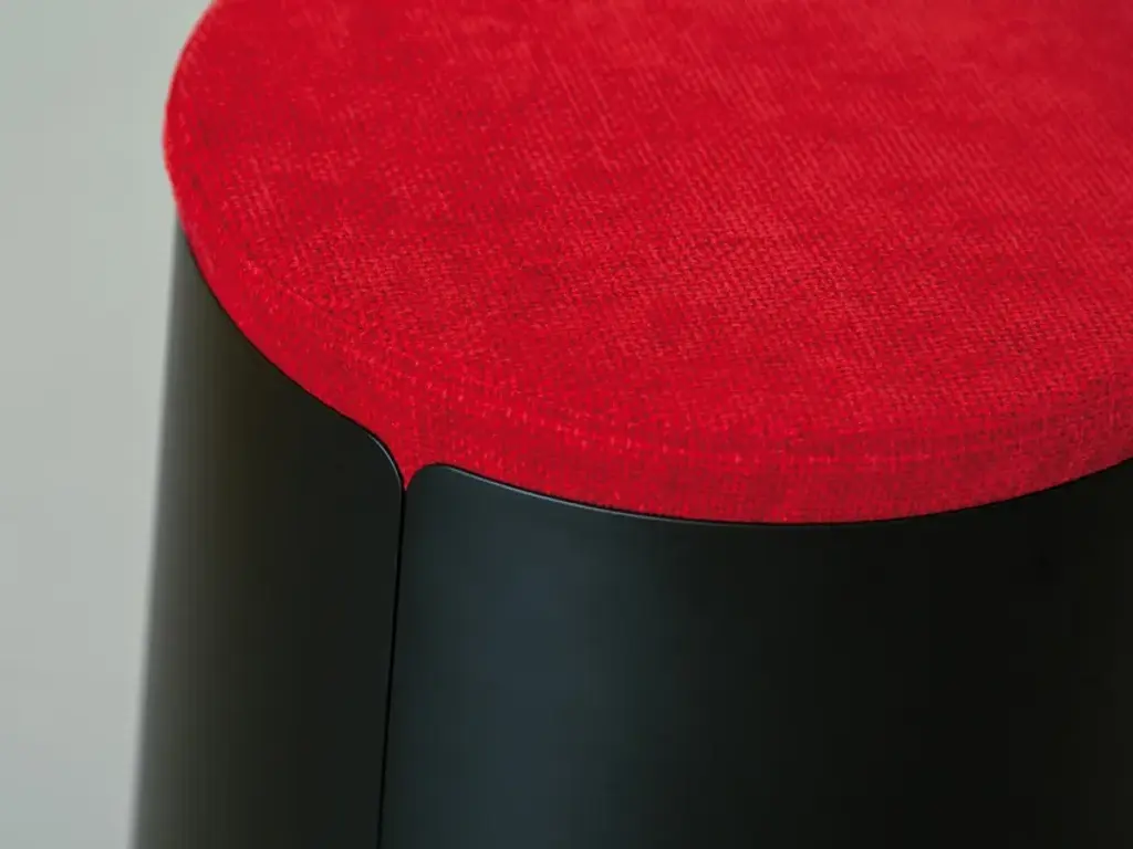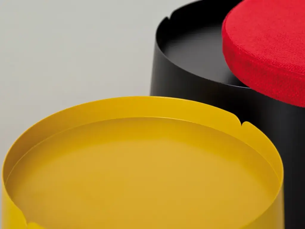BOBINO POUF is a comfortable pouf on conic metal coffee table with internal wheels. Suitable for any type of room and easy to move. Useful also for Contract for hotels.The pouf is removable so that Bobino becomes a useful coffee table. Available in all the 15 colors of the range.100% Made in Italy. Pouf made with Archimede fabric. Fabric’s characteristics: CLASS 1 – BS EN 1021.1 – BS EN 1021.2 – C.T.B. 117 – B1 DIN 4102 Part 1.How to clean powder coating finishing products: as the case may be, only clean water, with slight additives of neutral washing agents (pH7), is to be used with the aid of soft, non-abrasive cloths, rags or industrial cotton. Do not use washing agents with solvent.