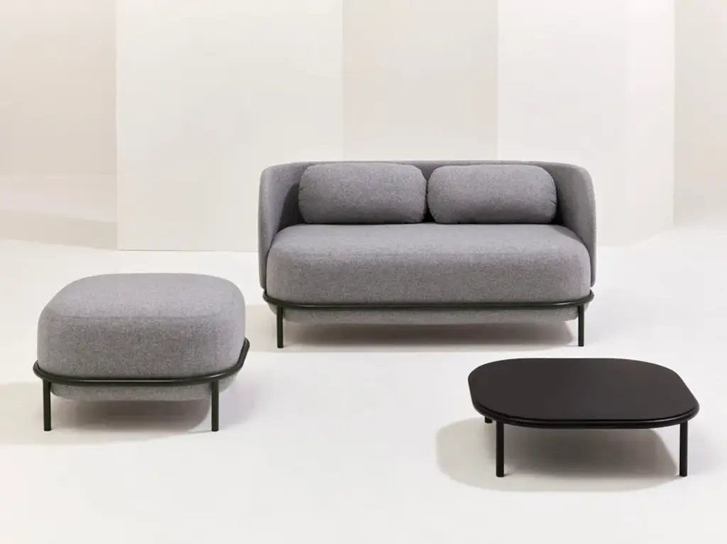 Bold 0C93 is a pouf with a metal frame.Bold is an upholstered furniture collection designed by Studio Pastina, featuring generous volumes and conceived to bring a new level of comfort to contract spaces.Supporting the tall seat—shaped in reference to classic French macarons—is a painted steel ring that serves as a distinctive design element.The collection is complemented by side tables and accessories such as the high backrest, ideal for creating private corners within larger environments.