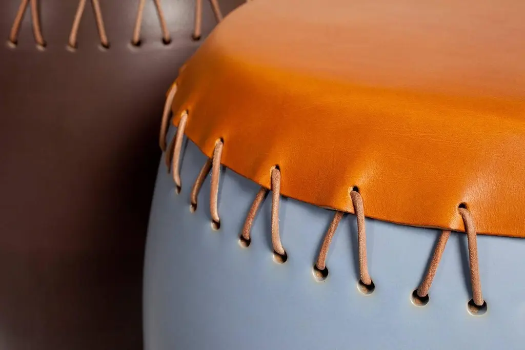 First, there was an encounter between a designer,Nestor Perkal, and the Oscar Maschera company. Then, there wasArgentina, his native land. While working with the company onleather projects, Argentina imposed itself as a self-evident pointof reference. It fuels his imagination, subtly inspiring his designswithout ever becoming an obvious citation.Nestor Perkal created Bombo in that same spirit. Its name resoundslike the beating of a drum; but the reference to Argentinian drumsis far more than tongue-in-cheek.The fabrication process is complex. Like upturned jars, these hollowceramic orbs are handmade, either turned or slip-cast, depending ontheir size. What follows is delicate: holes are punched in the yetunfired clay. Once the pieces are fired and glazed, the leather strapsthat ensure that the skin seat remain taut will be laced through them.Bombo is made exclusively in Pesaro, Italy, in the region of theMarche where Oscarmaschera has its headquarters. Bombo is theresult of a fruitful encounter between leather and stoneware, a workof Trans-Alpine savoir-faire.The Bombo collection is extraordinarily versatile; the pieces can beused as coffee tables, side tables, tea tables or stools. With its warmand familiar shapes and soft colors – earth-brown, sky blue, terracotta – Bombo fits gracefully into any décor – ready to “be of service”simply and beautifully.Enamelled stoneware in three different colors,genuine Italian vegetable-tanned leather,colors as per available range, lace in natural color.Handmade in Pesaro, ItalyNestor Perkal, born in Buenos Aires, lives and works in Paris.Though he trained as an architect, his work has always been oriented to design and interior architecture. In 1985, he founded an international design gallery in Paris, l’Espace Nestor Perkal, where he was among the first in Europe to show and sell pieces from the “New International Design” movement: Memphis Milano, Mariscal and many others.From 1987 to 1994, he was the artistic director of the goldsmith’s company Algorithme, where he invited many designers to work on edition projects that were highly successful in France and abroad. As a designer, he has collaborated with Drimmer, Lou Fagotin, Artcodif, Veronese, etc. At CIRVA (International Research Centre on Glass and Plastic Arts), he created the Miroirs collection in 1994-1996. As an interior architect, he has furnished the “café” of the Maison Européenne de la Photographie in Paris, different areas for Cartier and the Cartier Foundation for Contemporary Art, as well as many private apartments and houses. He has been the curator and scenographer of exhibitions held at the Cartier Foundation (La vie en Roses, 1998), at the Galerie Chez Valentin, Paris (“chez Valentin 2000”), at the Passage de Retz (Paris, 2000), at the Museum of Contemporary Art of Rochechouart and at the Grand Hornu in Belgium for the exhibition Désirs d’Objets (2003-2004) and at the Museum des Arts Décoratifs, Paris for the exhibition Editer le design (2006) and 100% Finlandia (2008). He has been the director of the Research Centre on the Arts of Fire and Earth (CRAFT) of Limoges (1993 – 2009), developing strong and lively projects aimed at creating an experimental and artistic connection between industrialists and designers, architects and artists.