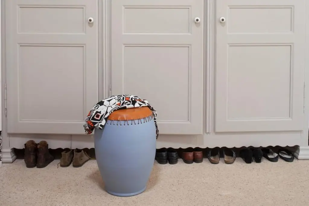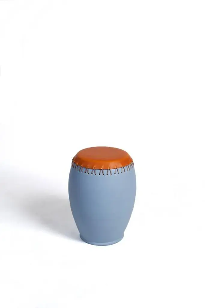 First, there was an encounter between a designer,Nestor Perkal, and the Oscarmaschera company. Then, there wasArgentina, his native land. While working with the company onleather projects, Argentina imposed itself as a self-evident pointof reference. It fuels his imagination, subtly inspiring his designswithout ever becoming an obvious citation.Nestor Perkal created Bombo in that same spirit. Its name resoundslike the beating of a drum; but the reference to Argentinian drumsis far more than tongue-in-cheek.The fabrication process is complex. Like upturned jars, these hollowceramic orbs are handmade, either turned or slip-cast, depending ontheir size. What follows is delicate: Holes are punched in the yetunfired clay. Once the pieces are fired and glazed, the leather strapsthat ensure that the skin seat remain taut will be laced through them.Bombo is made exclusively in Pesaro, Italy, in the region of theMarche where Oscarmaschera has its headquarters. Bombo is theresult of a fruitful encounter between leather and stoneware, a workof Trans-Alpine savoir-faire.The Bombo collection is extraordinarily versatile; the pieces can beused as coffee tables, side tables, tea tables or stools. With its warmand familiar shapes and soft colors earth-brown, sky blue, terracotta Bombo fits gracefully into any decor ready to “be of service”simply and beautifully.Enamelled stoneware in three different colors,genuine Italian vegetable-tanned leather,colors as per available range, lace in natural color.Handmade in Pesaro, Italy.Nestor Perkal, born in Buenos Aires, lives and works in Paris.Though he trained as an architect, his work has always been oriented to design and interior architecture. In 1985, he founded an international design gallery in Paris, l’Espace Nestor Perkal, where he was among the first in Europe to show and sell pieces from the “New International Design” movement: Memphis Milano, Mariscal and many others.From 1987 to 1994, he was the artistic director of the goldsmith’s company Algorithme, where he invited many designers to work on edition projects that were highly successful in France and abroad. As a designer, he has collaborated with Drimmer, Lou Fagotin, Artcodif, Veronese, etc. At CIRVA (International Research Centre on Glass and Plastic Arts), he created the Miroirs collection in 1994-1996. As an interior architect, he has furnished the “café” of the Maison Européenne de la Photographie in Paris, different areas for Cartier and the Cartier Foundation for Contemporary Art, as well as many private apartments and houses. He has been the curator and scenographer of exhibitions held at the Cartier Foundation (La vie en Roses, 1998), at the Galerie Chez Valentin, Paris (“chez Valentin 2000”), at the Passage de Retz (Paris, 2000), at the Museum of Contemporary Art of Rochechouart and at the Grand Hornu in Belgium for the exhibition Désirs d’Objets (2003-2004) and at the Museum des Arts Décoratifs, Paris for the exhibition Editer le design (2006) and 100% Finlandia (2008). He has been the director of the Research Centre on the Arts of Fire and Earth (CRAFT) of Limoges (1993 – 2009), developing strong and lively projects aimed at creating an experimental and artistic connection between industrialists and designers, architects and artists.