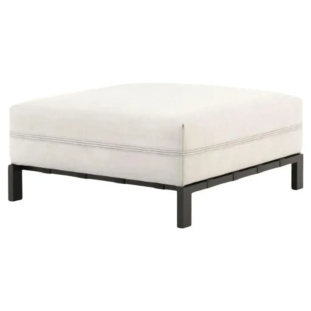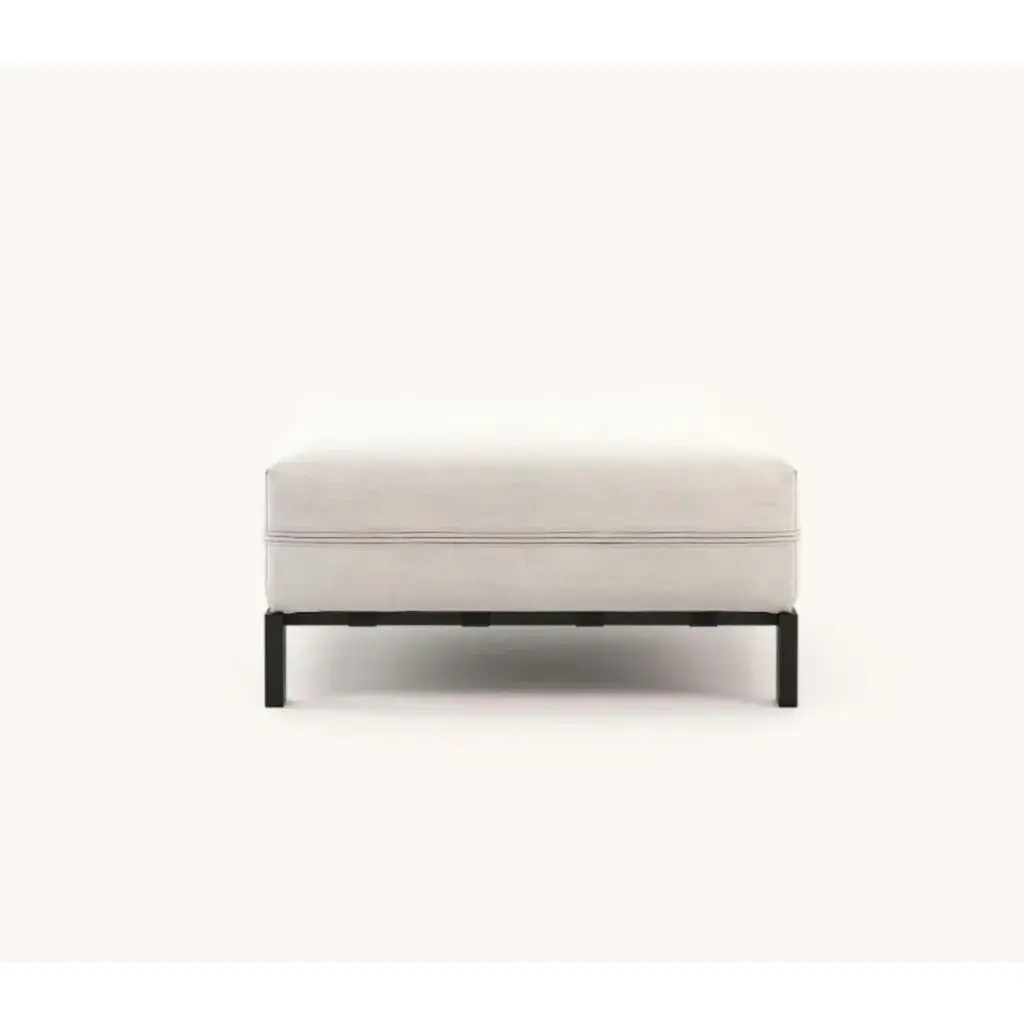 Bondi pouf by Domkapa Materials: black texturized stainless steel, fiber (Drava Nata). Dimensions: W 95 x D 88 x H 42 cm. Also available in different materials. Bondi Pouf is an elegant upholstered piece with a comfortable size and a pleasant spacious to rest. Pair the Bondi Pouf with the Bondi Sofa to really stretch out. Domkapa holds a tremendous passion for detailed stitching, presenting several similarities to the haute-couture philosophy focused on the value of a “made by hand”.