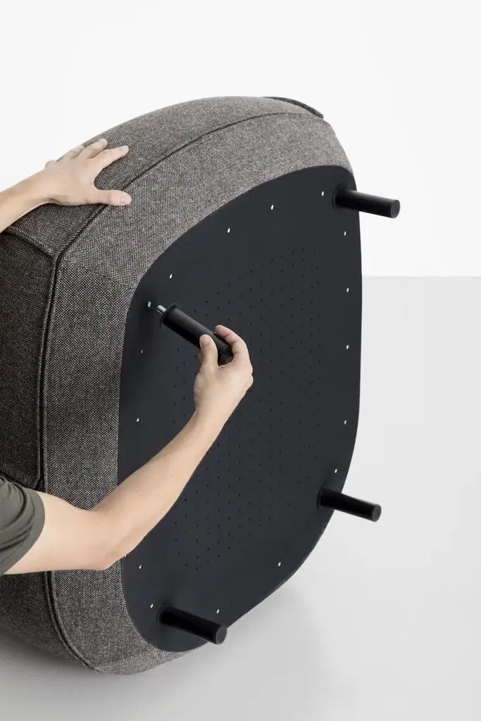 Brioni is a collection of poufs, lounge armchairs and daybeds named after a famous archipelago in the Adriatic Sea. They resemble small islands rising out of the sea. Their design features a dark band on the lower part that prevents direct contact between the ground and the upholstery. The upholstery is made of Sunbrella® fabric: stain-resistant, breathable, resistant to UV rays and water-repellent. They are soft and comfortable thanks to flexible polyester padding and plastic slats, enclosed in water-resistant housing. Light and easy to move, they can be used to create countless compositions outdoors, experimenting with different shapes, colours and sizes.Initially designed for outdoor use, the six items in the Brioni collection have been redesigned by LucidiPevere for use in homes: the entire surface of the seat is now covered in fabric or leather, without the dark lower band that prevented contact with the ground. It has a zip, an aesthetic and functional detail, like the previous version, as well as soft polyester padding with plastic slats. Light and easy to move, the poufs are perfect when positioned next to the sofa, whereas the armchairs and daybeds are comfortable and versatile seats that invite you to relax.Designed by the duo LucidiPevere for outdoor use, and later redesigned in an indoor version, the collection is now enriched with new versions. A lounge, daybed and pouf accompany the twoseater and threeseater chairs and BrioniUp, an advanced version of the armchair and sofa with a high seat and backs, ideal for use in the contract sector. Metal feet, ten centimetres long, are available on request to raise the height of the chair.