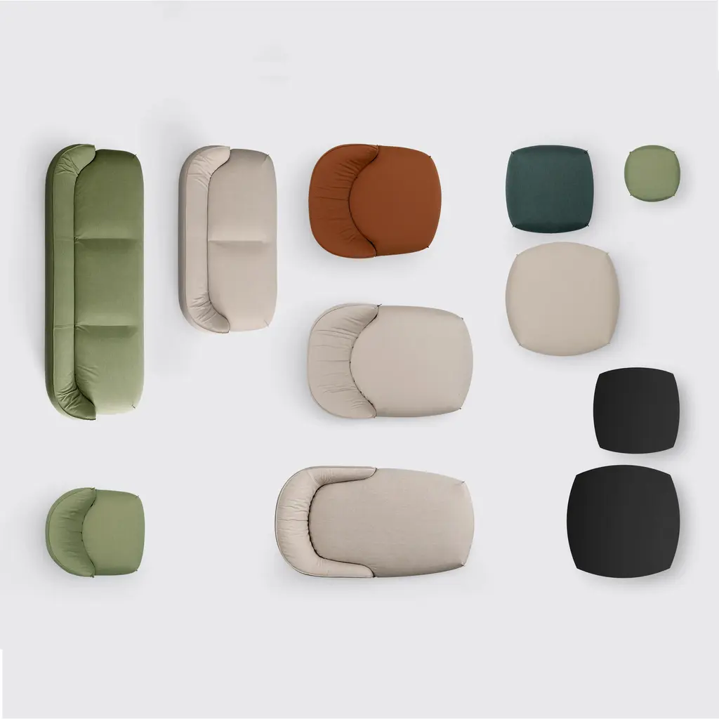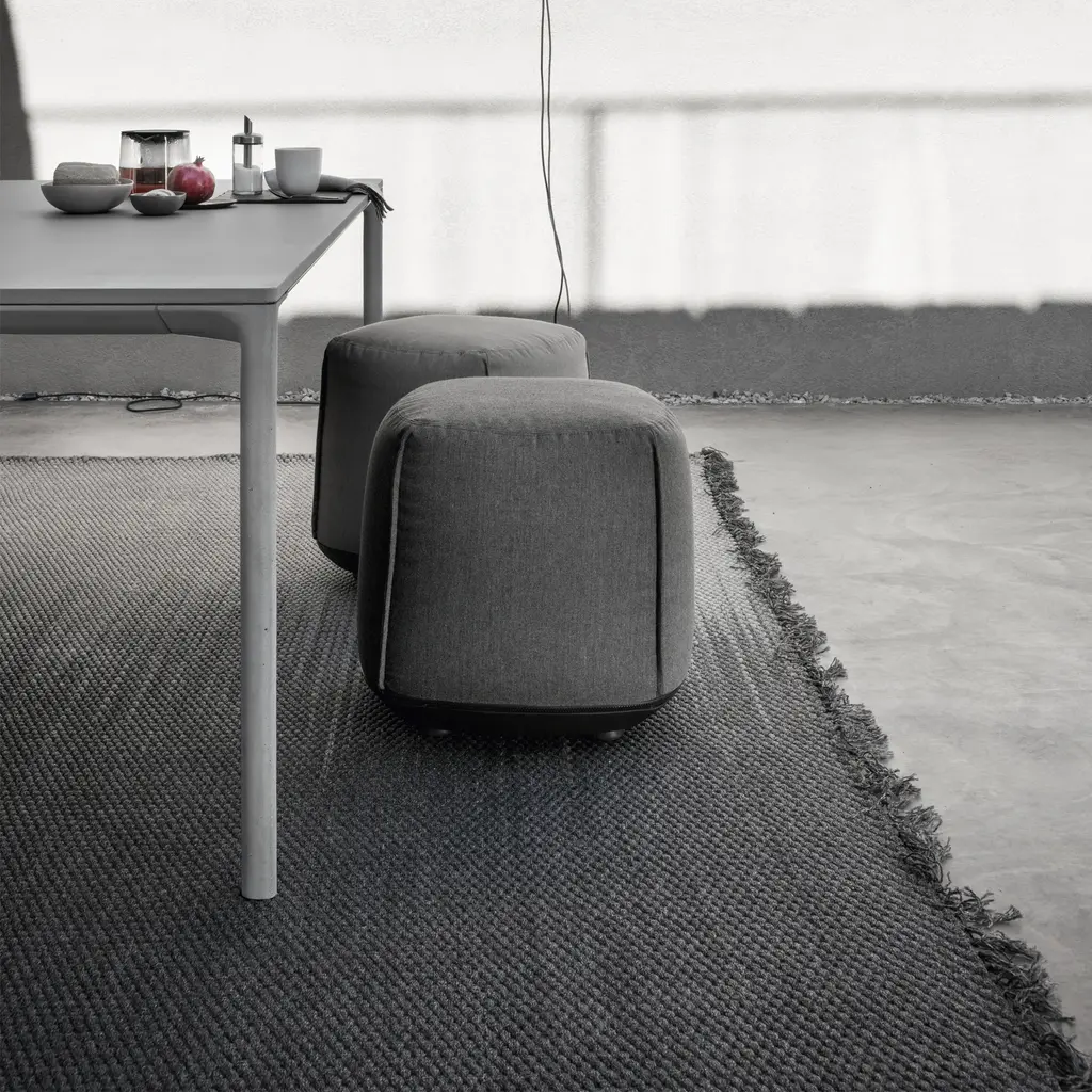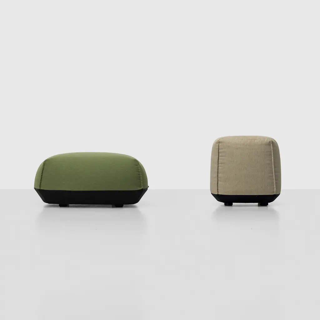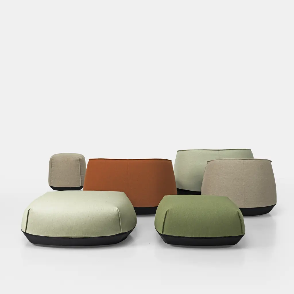 Brioni is a collection of poufs, lounge armchairs and daybeds named after a famous archipelago in the Adriatic Sea. They resemble small islands rising out of the sea. Their design features a dark band on the lower part that prevents direct contact between the ground and the upholstery. The upholstery is made of Sunbrella® fabric: stain-resistant, breathable, resistant to UV rays and water-repellent. They are soft and comfortable thanks to flexible polyester padding and plastic slats, enclosed in water-resistant housing. Light and easy to move, they can be used to create countless compositions outdoors, experimenting with different shapes, colours and sizes.