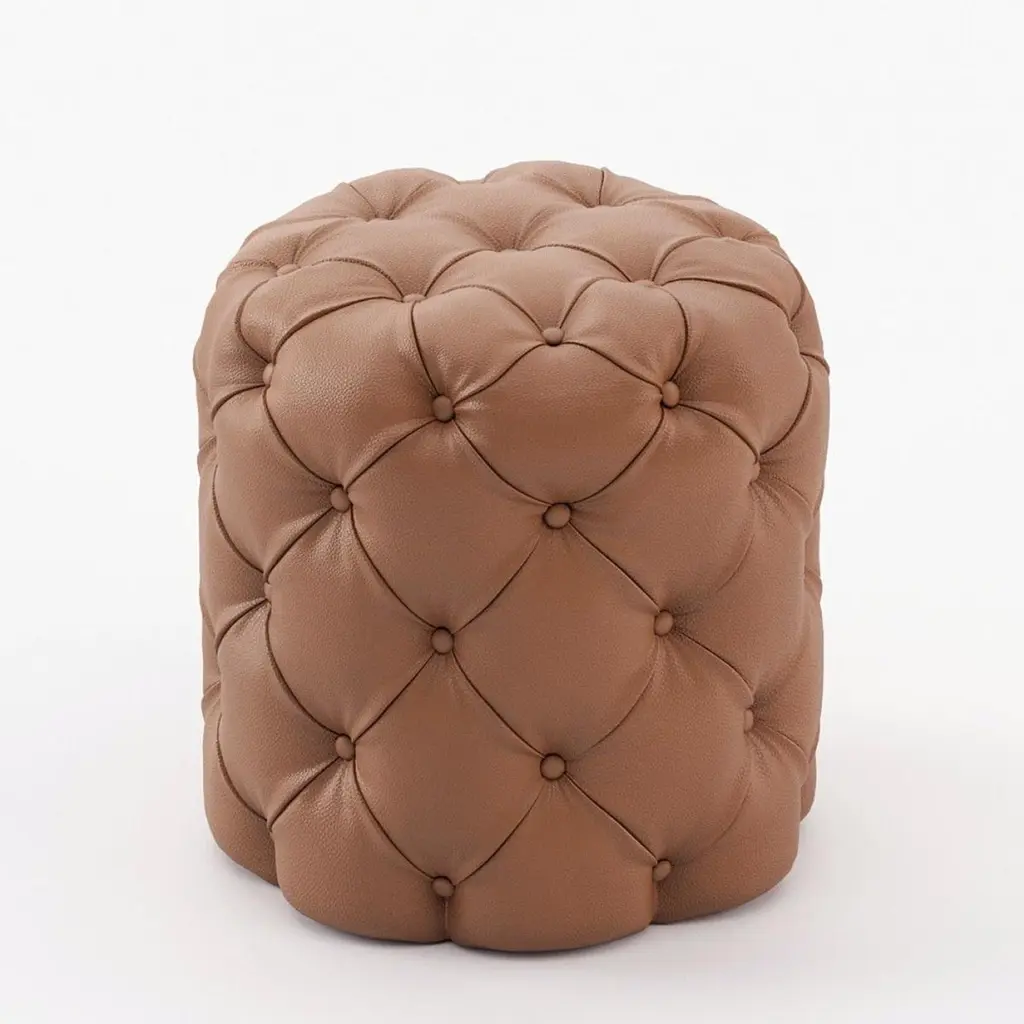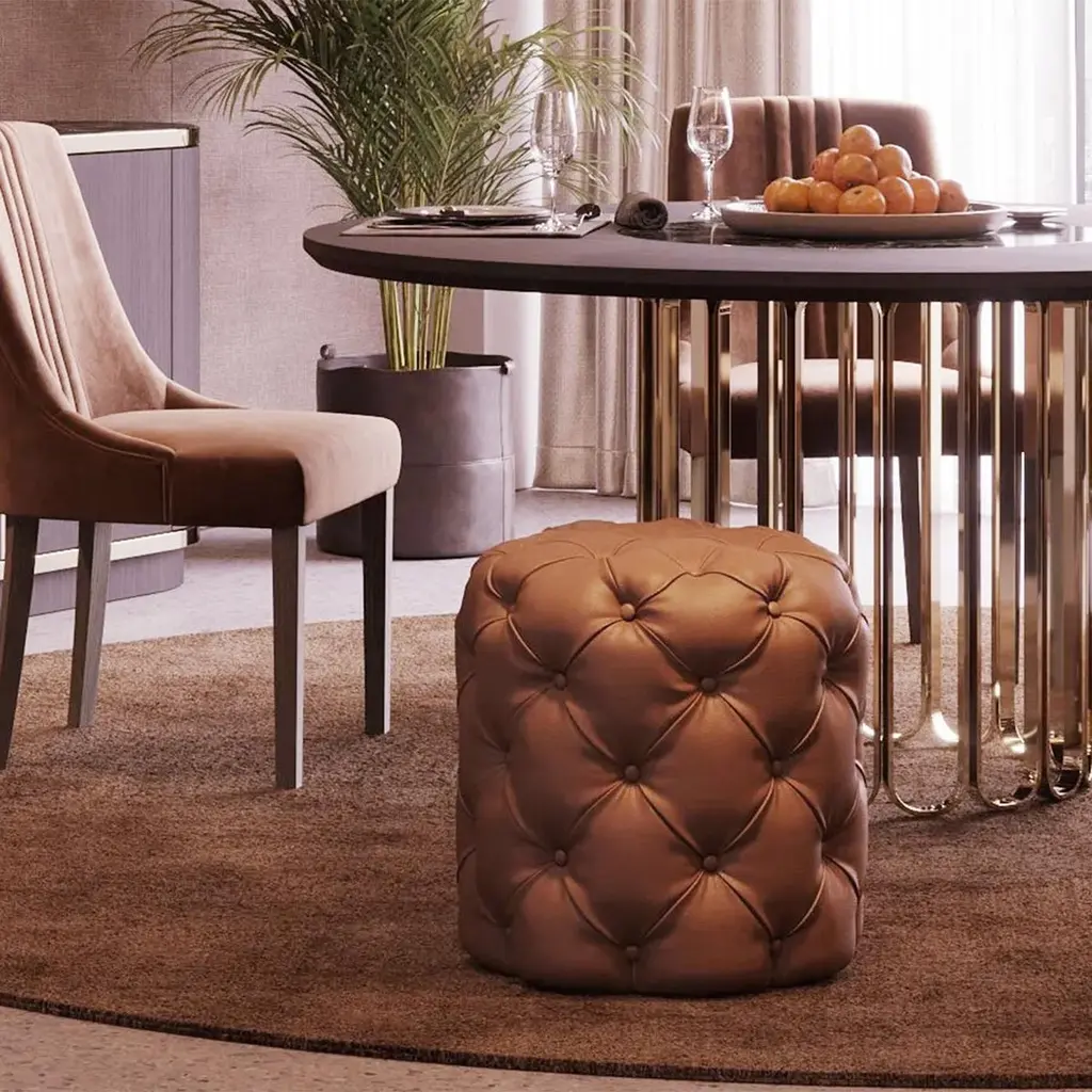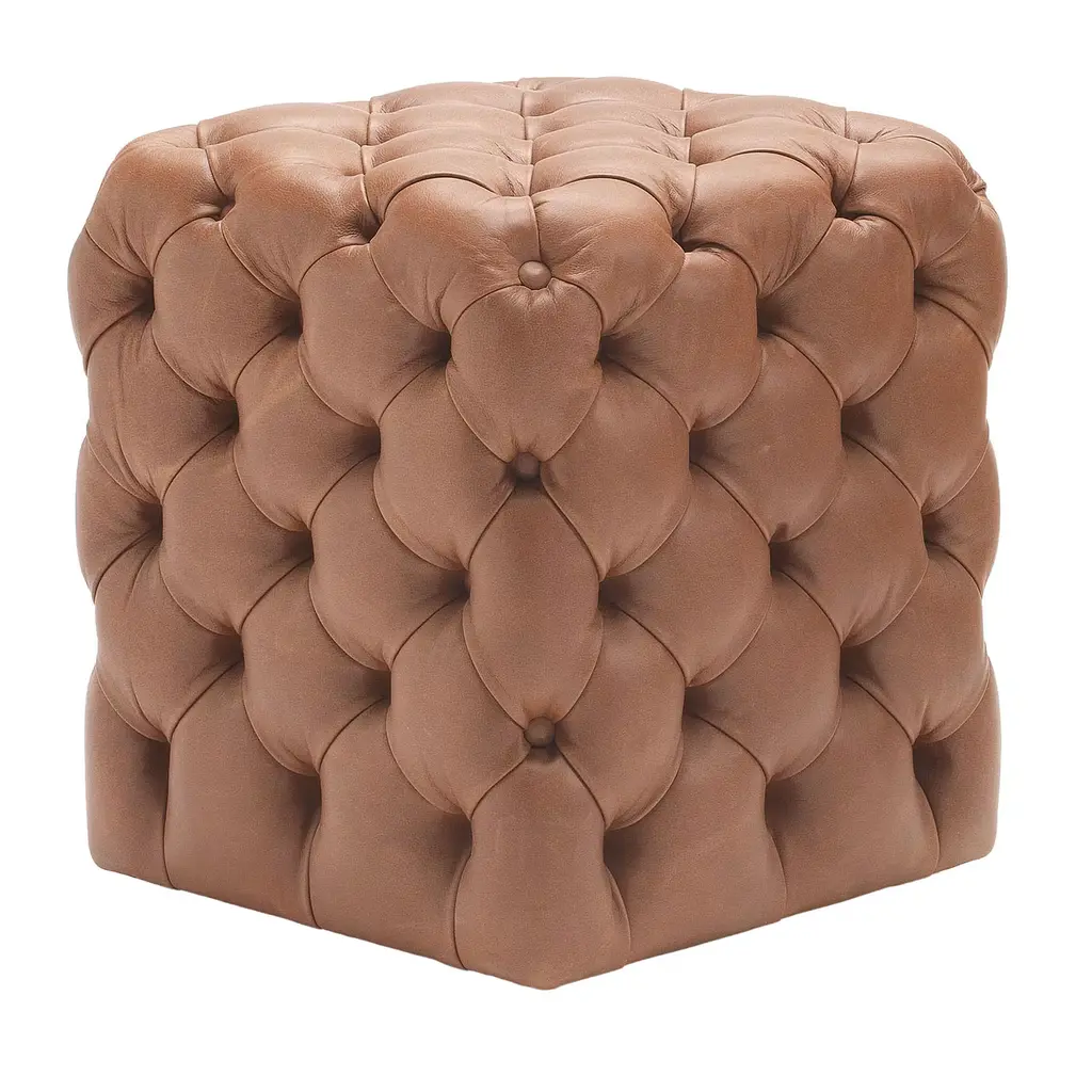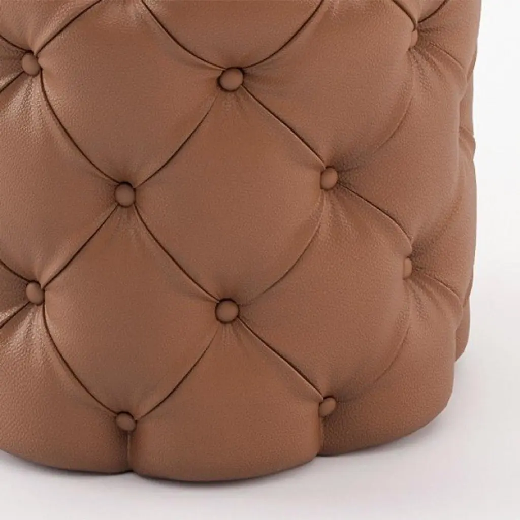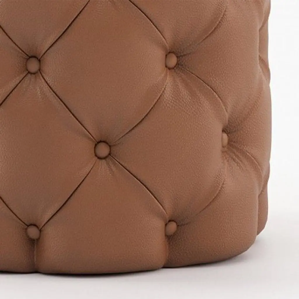 Pouf British Brown Leather with wooden structure,upholstered and covered with brown leather capitonatedwith button. Also available in other leather colors, on request.
