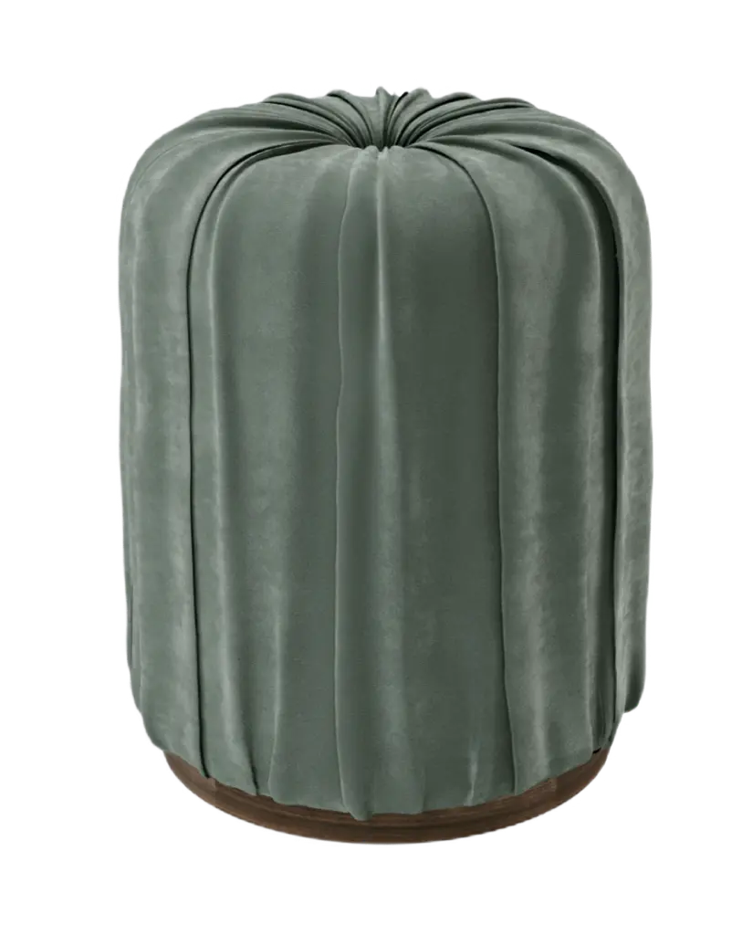 A stunningly creative design by Lorenzo Palmeri, this pouf embodies the refined elegance of simplicity. Cleanly shaped like a stylized mushroom, the wooden structure is softly padded with polyurethane foam and upholstered with an aquamarine-colored velvety fabric. Available in other colors, please ask the Concierge for details.