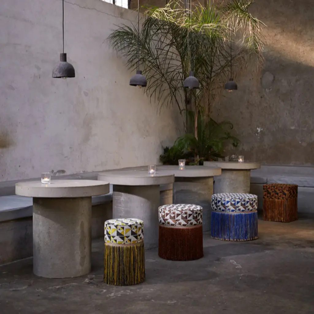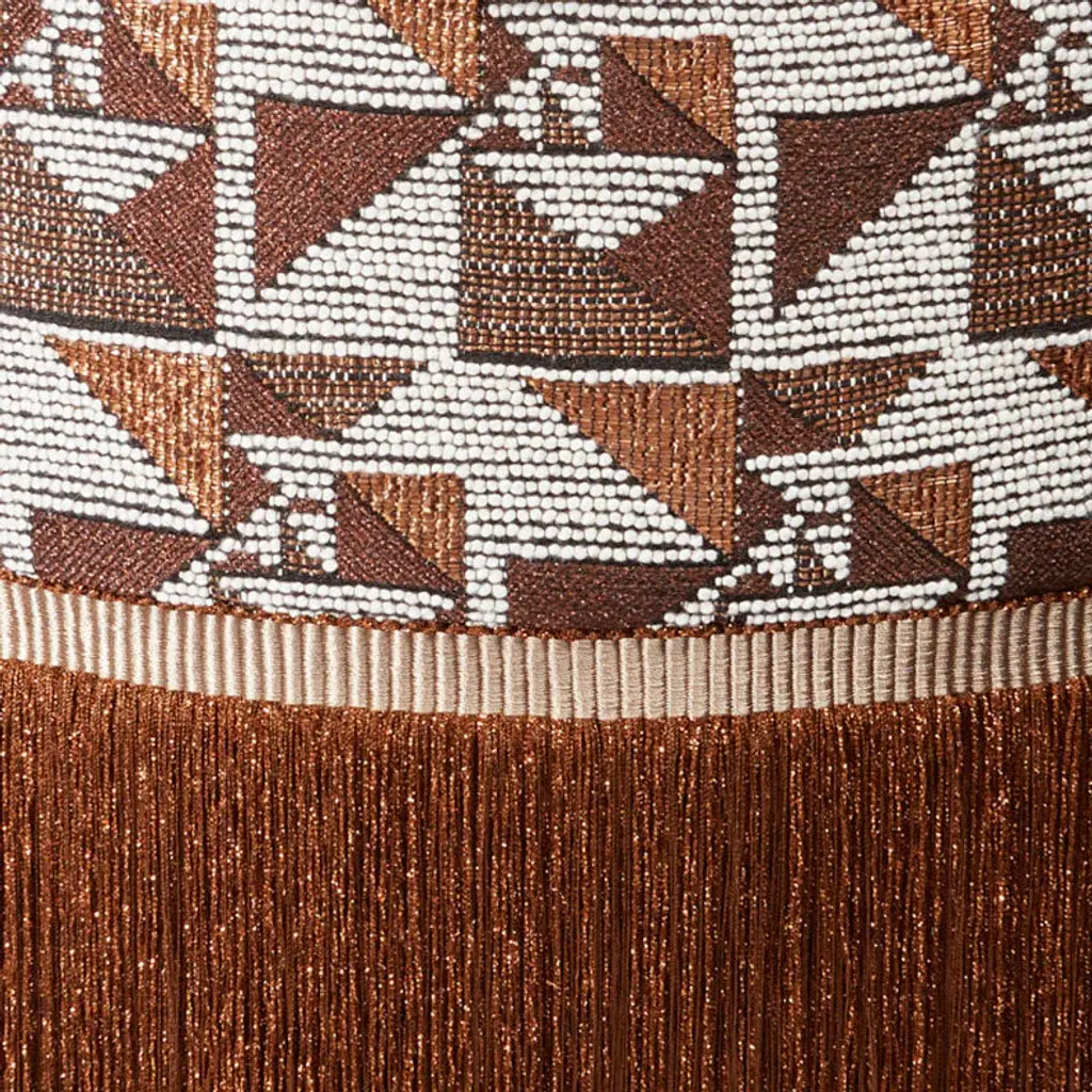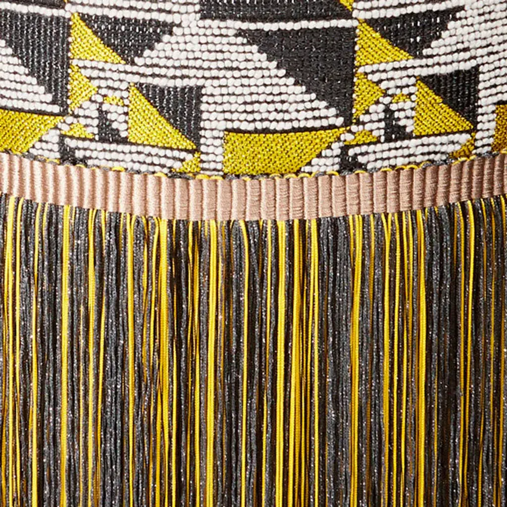 The Capsule Tribe Pouf is a study in luxe, bohemian elegance. Upholstered in retro, earth-toned fabric, it features a floor-length fringe skirt of viscose and lurex that shimmers with movement as it catches the light. Crafted on a solid beech wood frame, each pouf is handmade in Milan and signed & numbered by Lorenza Bozzoli, underscoring its exclusivity. This luxury fringe pouf is both a functional seat and a sculptural statement—perfect for adding fashion-forward texture and intrigue to any modern interior. Features