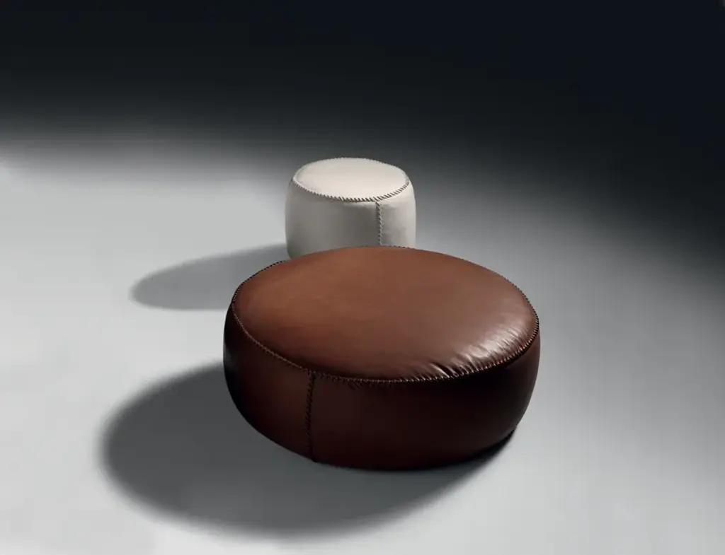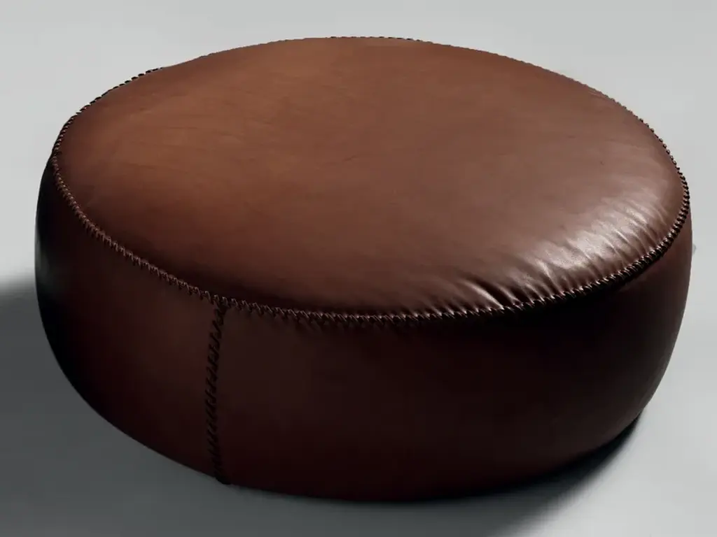 Casablanca is a round leather pouf. Leather: Baltik col. 93002.Pouf with structure in multi-layered poplar. Padding in high-resilience polyurethane foam in different densities. Upper padding 100% European feather. Hand-sewn leather cover. Non removable cover.Suggestions of colors and shapes define the two poufs of the Casablanca collection. Skilled craftsmen have been able to shape and give life to this piece of furniture. Starting from the outer leather cover, through the padding in 100% goose feather, up to trimming in relief and hand-sewn. Hallmarks of an excellent care for every little detail of style. Made in Italy, once again reigns supreme mixing the past with the present.