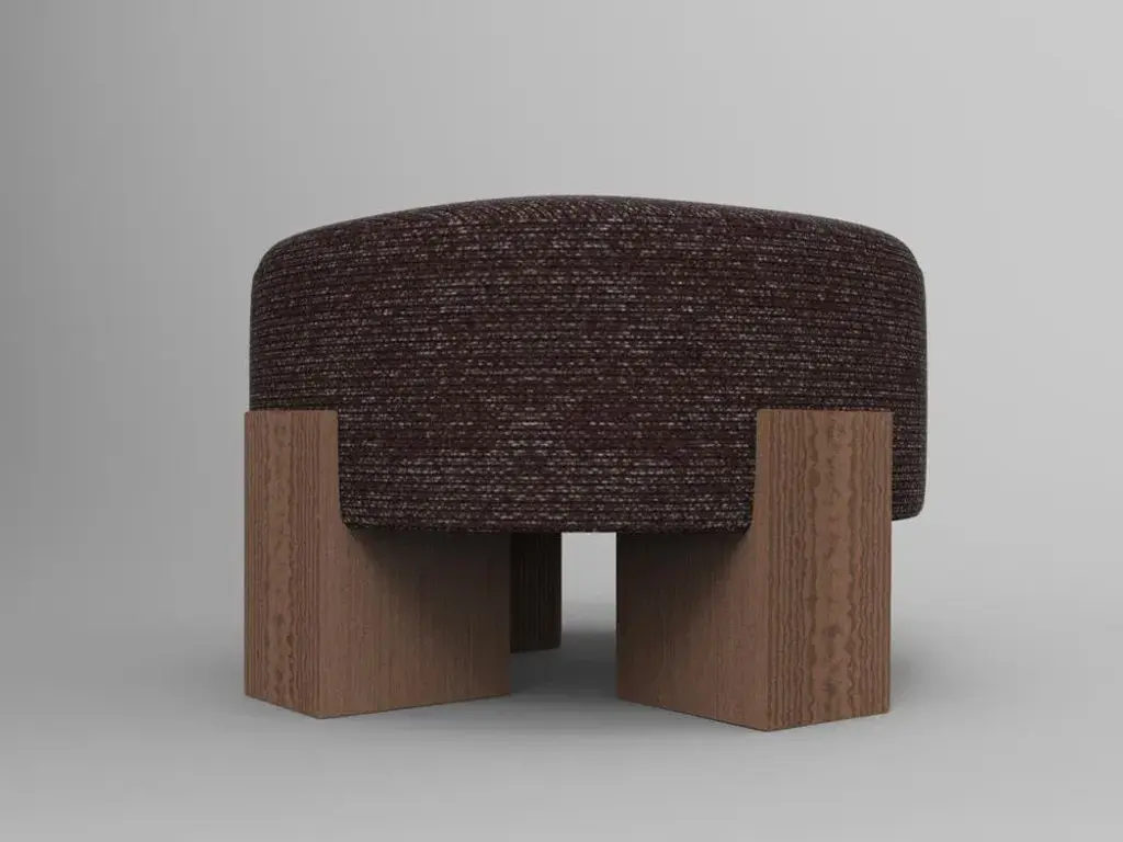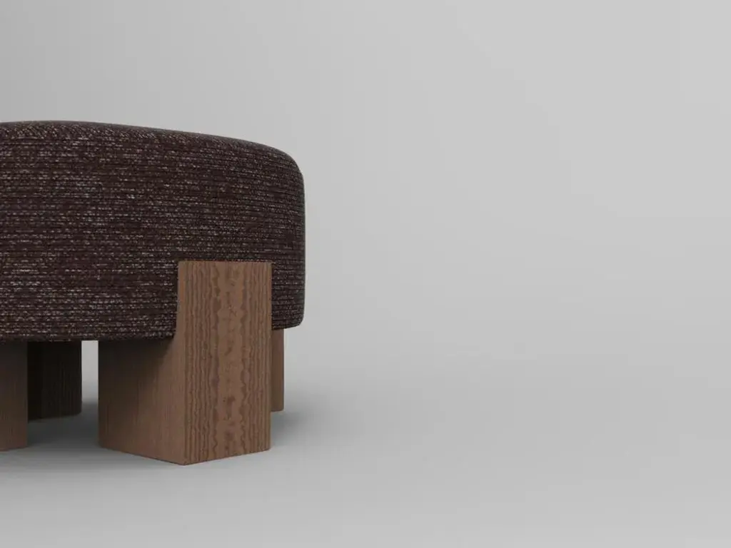 Cassette Pouf In Outside Tricot Dark Brown Fabric And Smoked Oak By Alter Ego For Collector