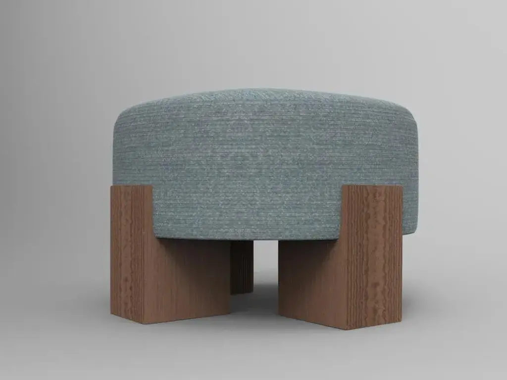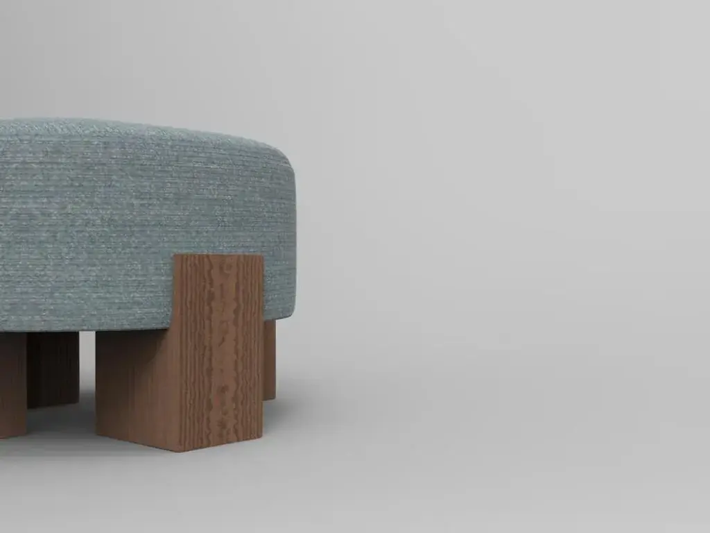 Cassette Pouf In Outside Tricot Light Seafoam Fabric And Smoked Oak By Alter Ego For Collector