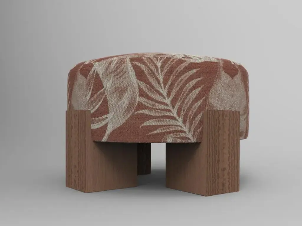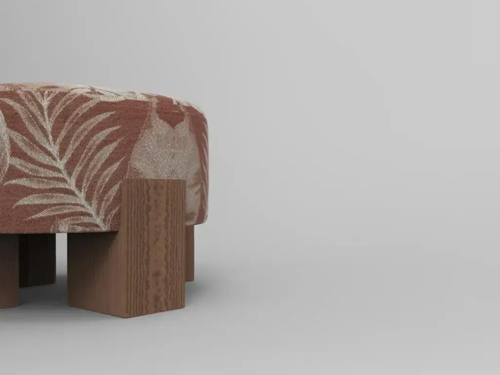 Cassette Pouf In Outside Yucca Terracotta Fabric And Smoked Oak By Alter Ego For Collector