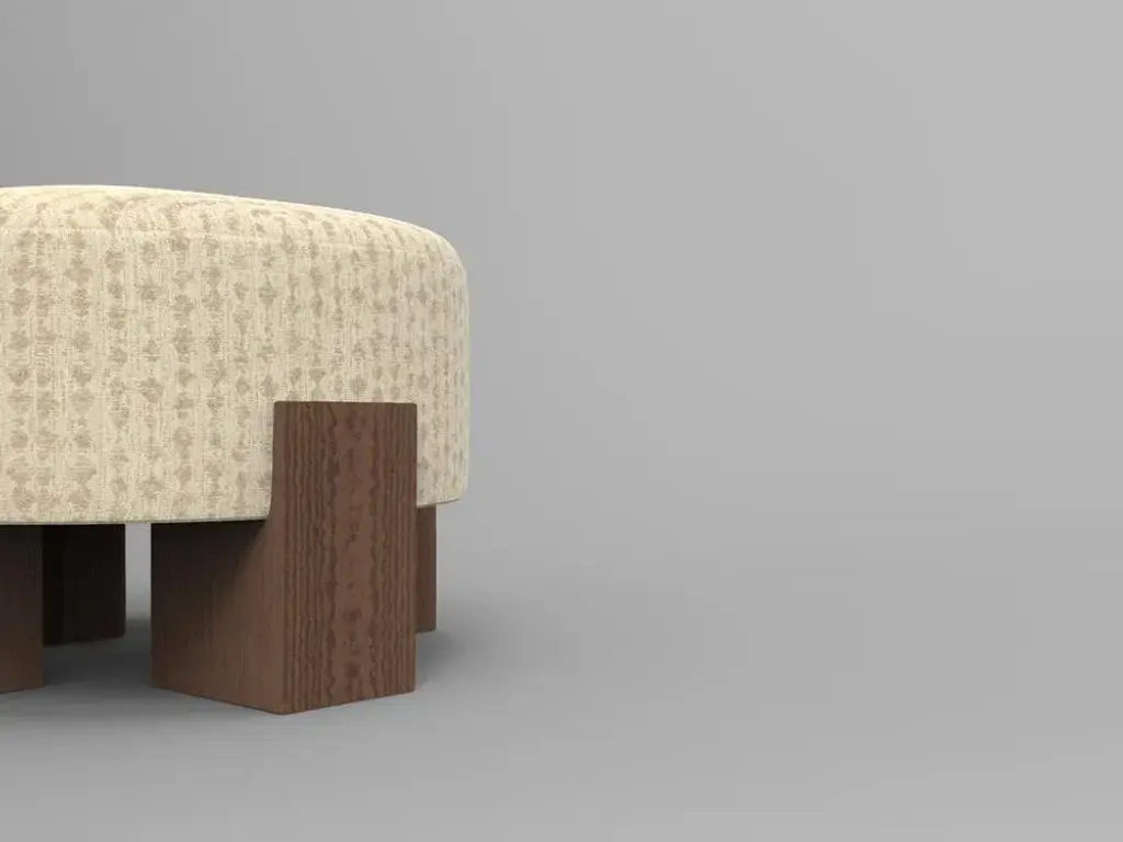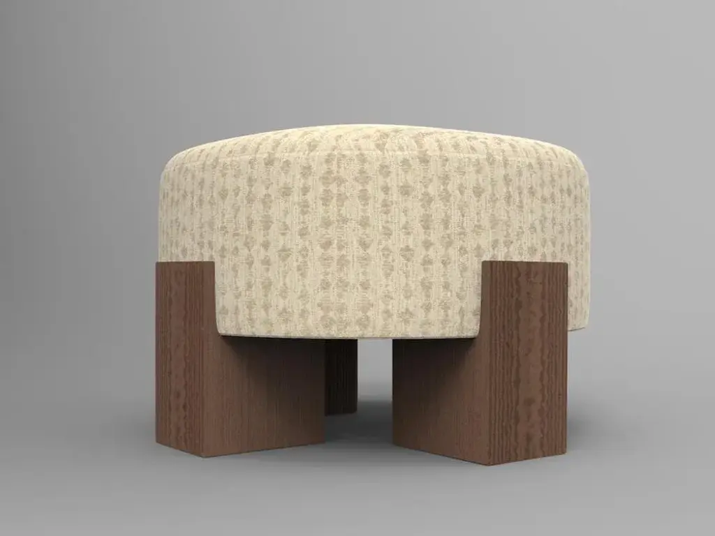 Cassette Pouf In Serai Alabaster Fabric And Smoked Oak By Alter Ego For Collector